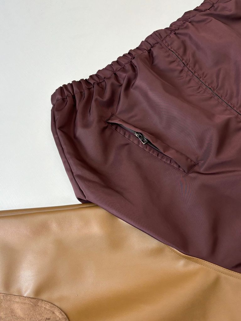 • Mảng da lộn/nhung lộn ở phần tay dưới tăng độ “đắt” và chiều sâu chất liệu