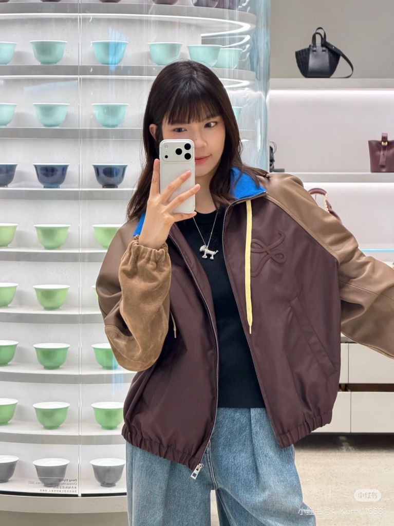 • Dáng bomber liền mũ, phom đứng gọn, tạo tổng thể mạnh mẽ nhưng vẫn rất thanh lịch