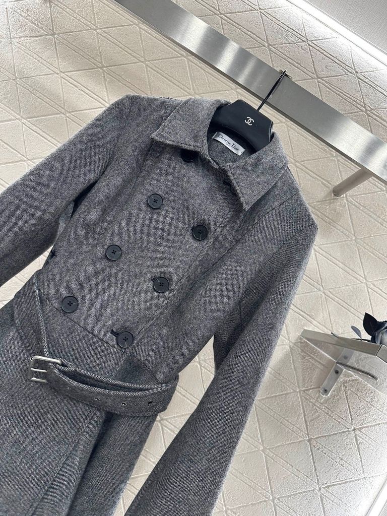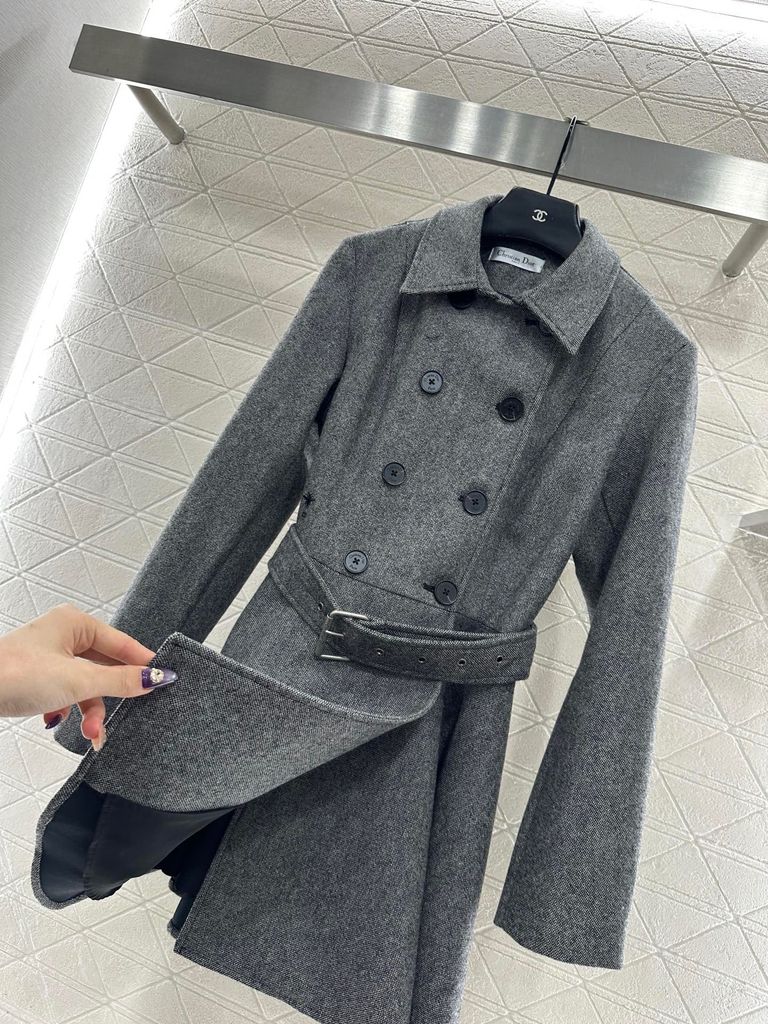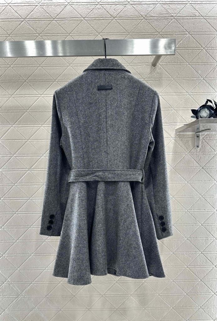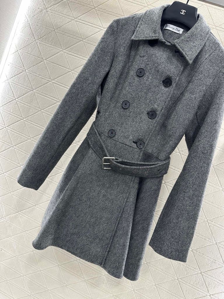 ÁO KHOÁC NỮ DIO* DẠ LEN DOUBLE-BREASTED ĐAI EO – XÁM GHI, 2150k (HÀNG ORDER QUỐC TẾ)
