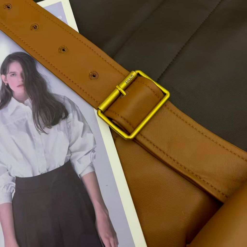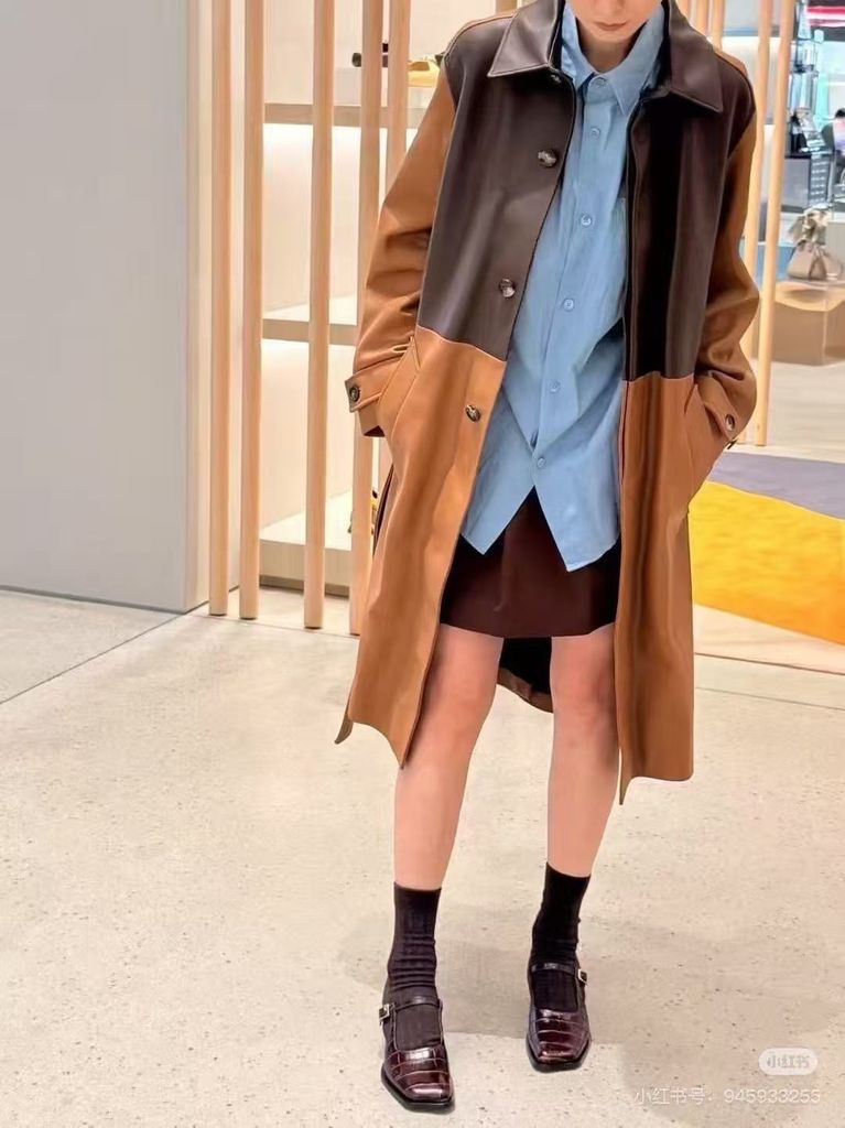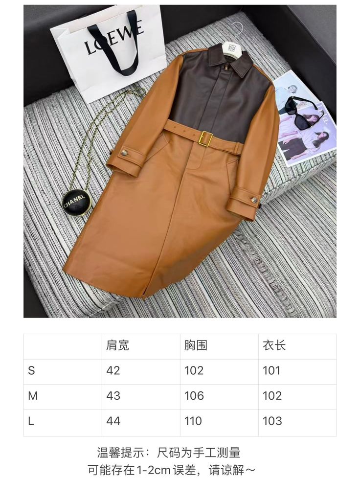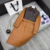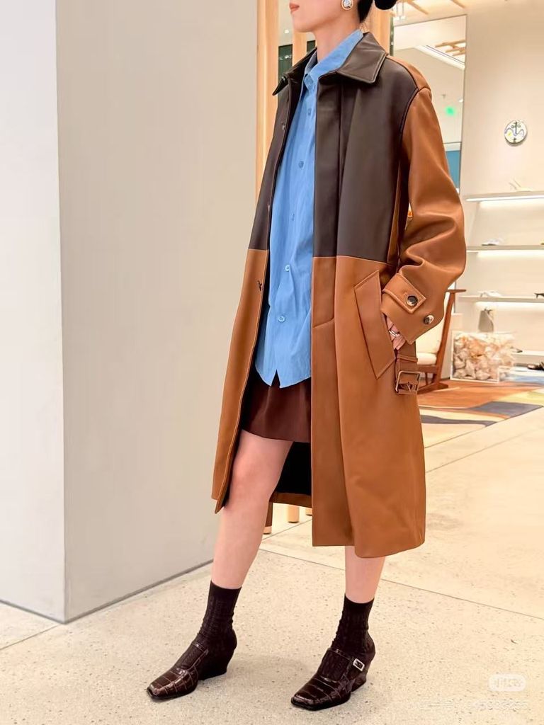 ÁO KHOÁC DA DÁNG TRENCH NỮ LOE* PHỐI KHỐI DA CAO CẤP ĐAI LƯNG CHUẨN RUNWAY 7250K (HÀNG ORDER QUỐC TẾ)