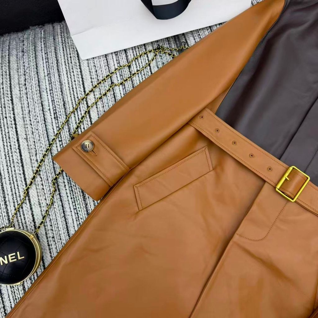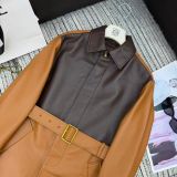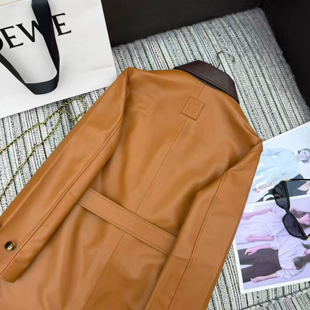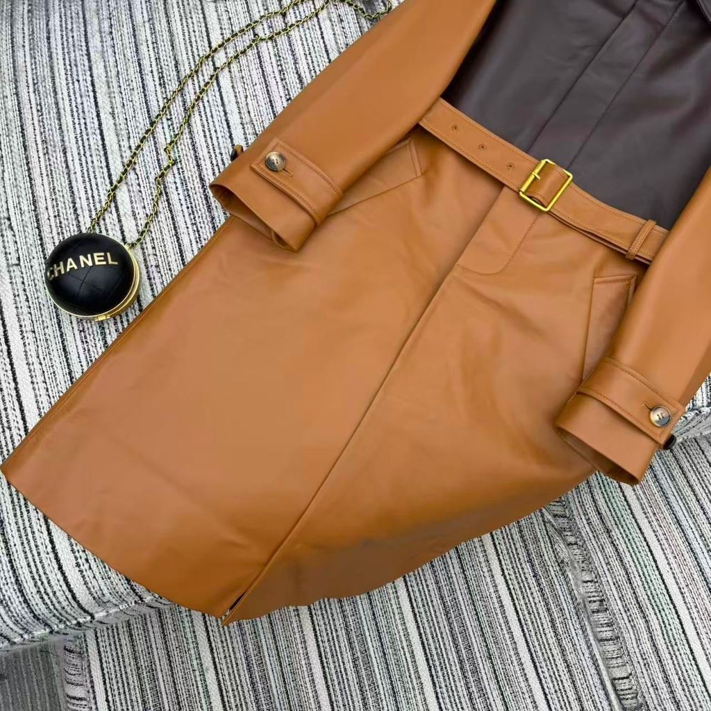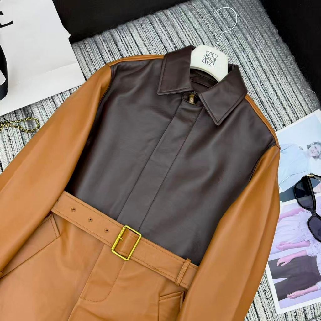 ÁO KHOÁC DA DÁNG TRENCH NỮ LOE* PHỐI KHỐI DA CAO CẤP ĐAI LƯNG CHUẨN RUNWAY 7250K (HÀNG ORDER QUỐC TẾ)