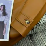• Cổ áo đứng vừa phải, tay dài có đai điều chỉnh, chi tiết cúc và khóa kim loại tông đồng nổi bật nhưng vẫn rất tinh tế.