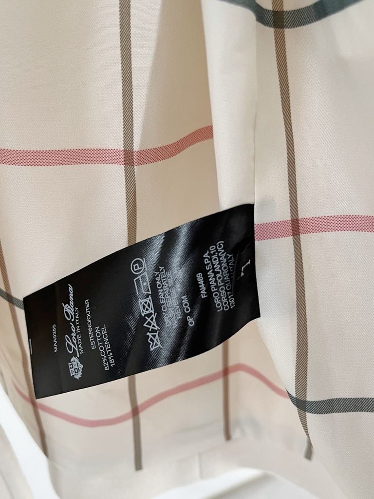 • Lót caro kinh điển tạo điểm nhấn tinh tế; tay áo xử lý sạch sẽ, hợp phong cách tối giản.