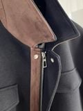 Chiếc áo khoác dáng ngắn ấm áp cho mùa thu đông, phối màu xanh navy – nâu trầm sang trọng, lên dáng gọn gàng. Phù hợp khách thích phong cách trẻ trung nhưng vẫn giữ được sự chỉn chu, tinh tế khi xuất hiện.