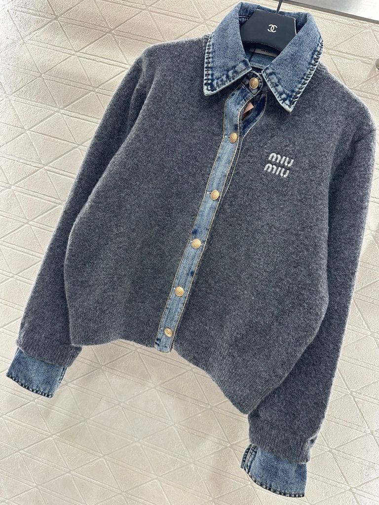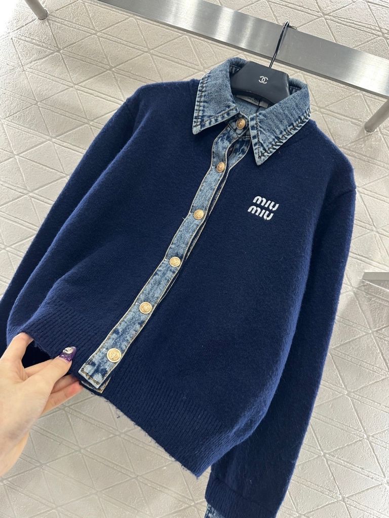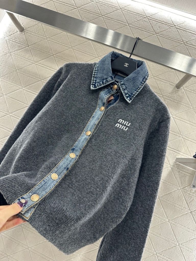 ÁO KHOÁC LEN NỮ MM PHỐI CỔ DENIM LẬT – NẸP DENIM NỔI BẬT, LOGO THÊU TINH TẾ 1300k (HÀNG ORDER QUỐC TẾ)