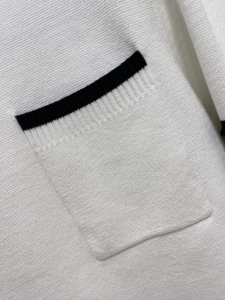 • Điểm nhấn signature ở tay + viền bo dệt tương phản tinh tế, nhìn là nhận ra gu.