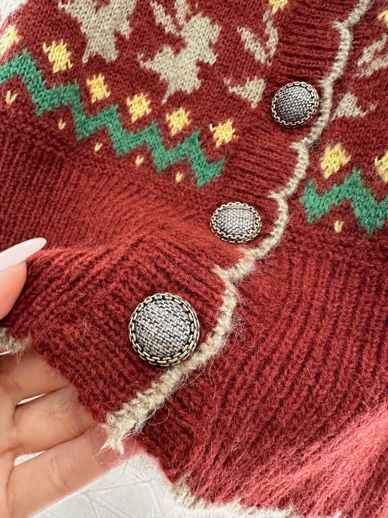 • Dáng cardigan cổ V thanh thoát, hàng khuy nổi bật, dễ tạo lớp outfit có chiều sâu.