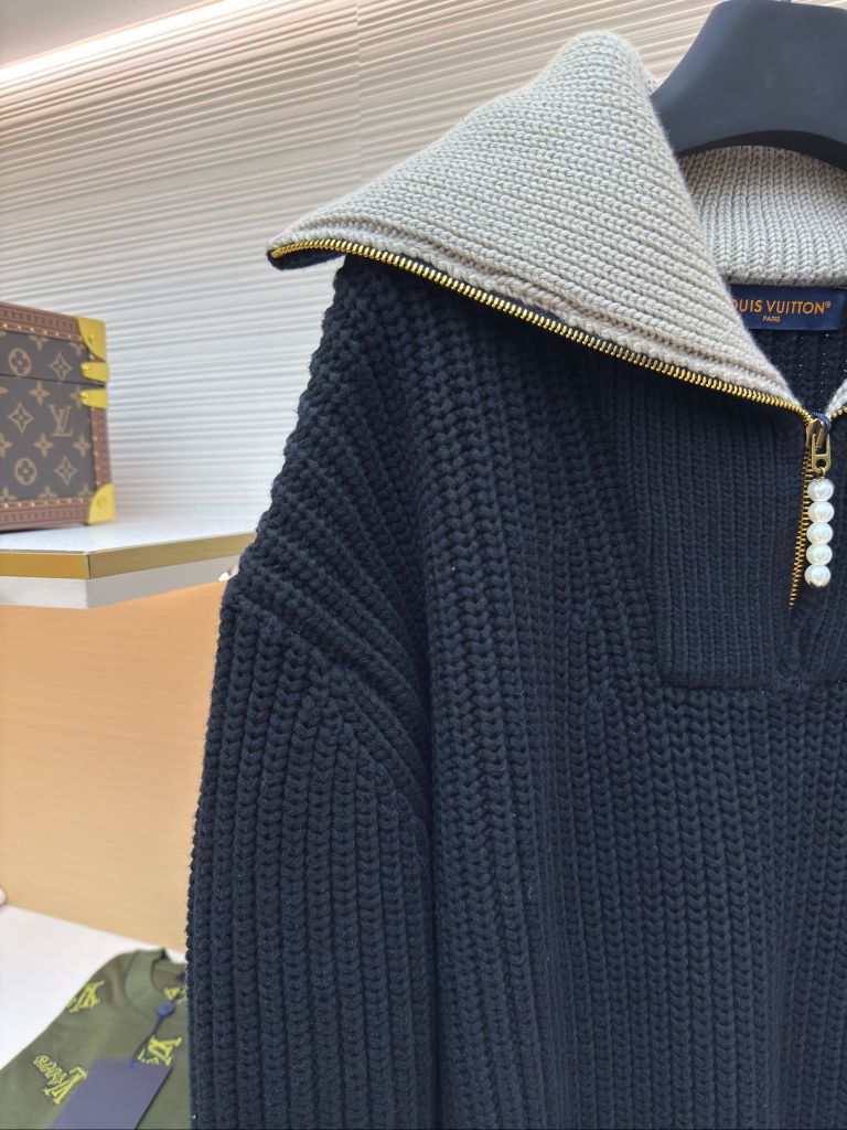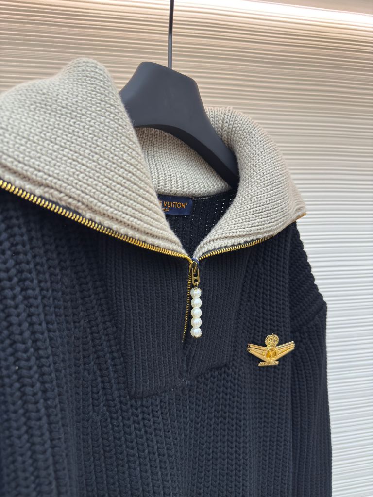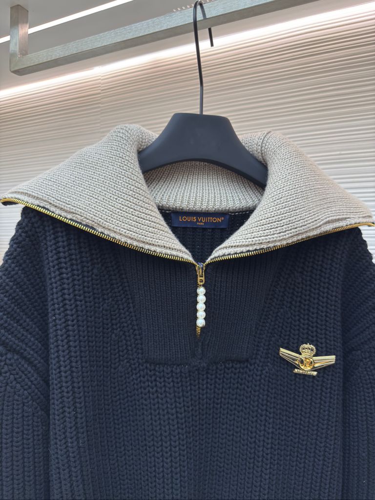 ÁO LEN NAM NỮ L V PHỐI CỔ LẬT NỬA ZIP – ĐIỂM NHẤN NGỌC TRAI & HUY HIỆU LV AIRWAYS (HÀNG ORDER QUỐC TẾ)