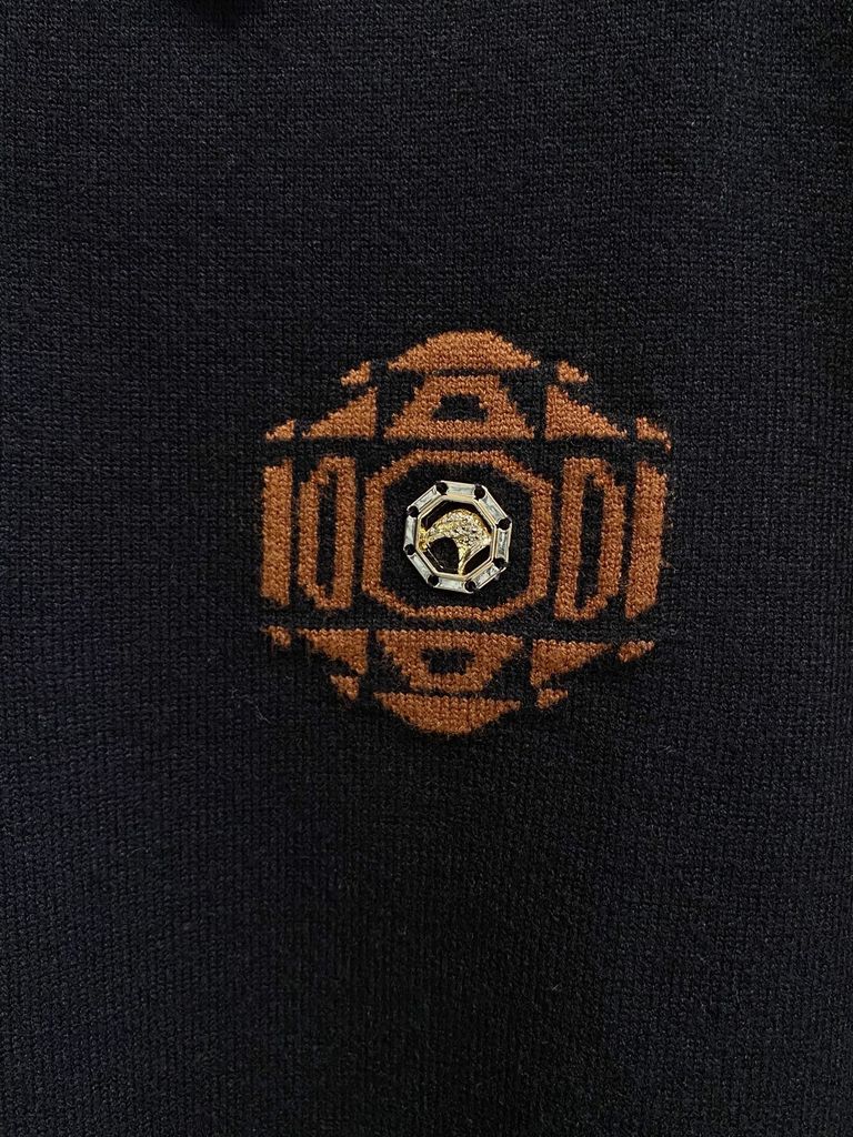 • Điểm nhấn tập trung ở họa tiết Medusa trước ngực, kết hợp thêu dày và chi tiết đính đá tạo chiều sâu nổi bật.