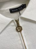• Cổ polo lịch lãm kết hợp khóa kéo ngắn, tạo phom gọn gàng và tăng độ “đắt” cho tổng thể.