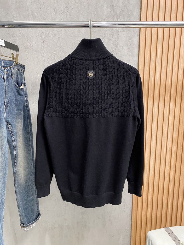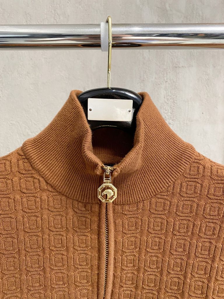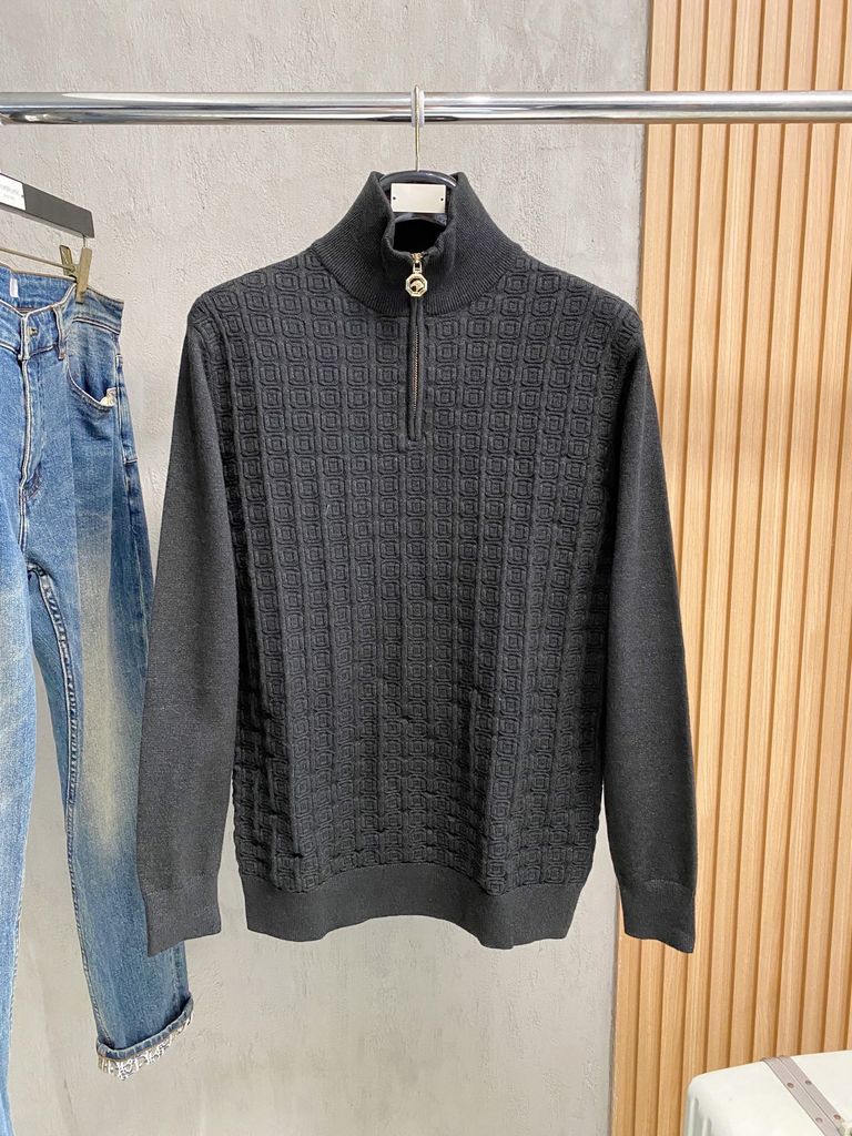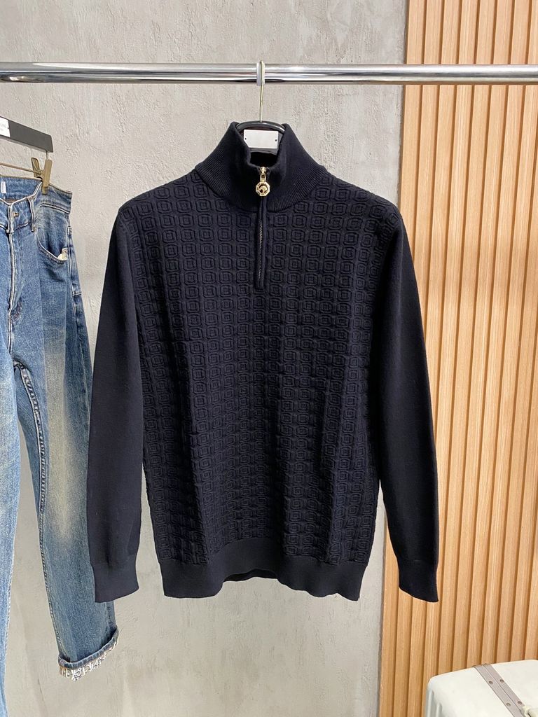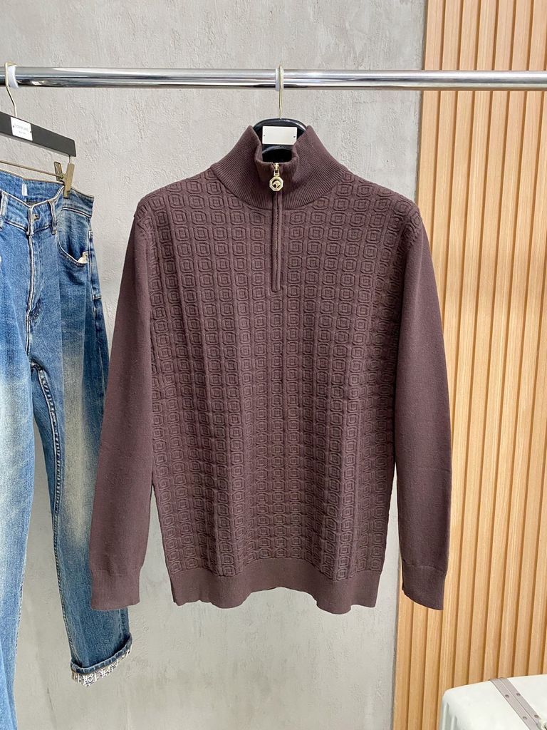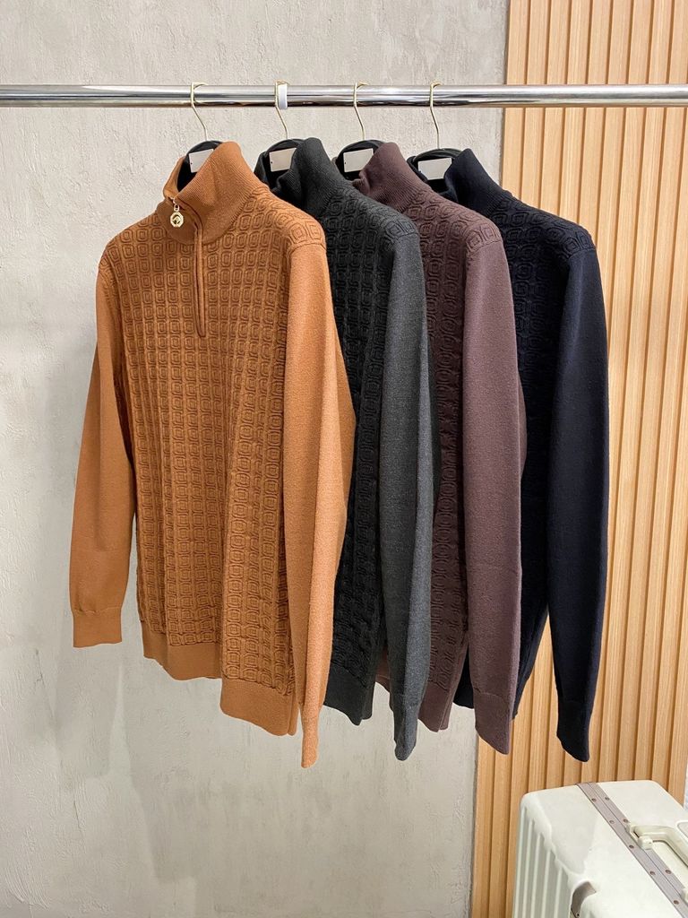 Một phiên bản áo len zip cổ cao mang tinh thần quý ông châu Âu: tối giản vừa đủ, nhưng “ăn điểm” ở bề mặt dệt khối nhìn sang ngay từ ánh nhìn đầu tiên.