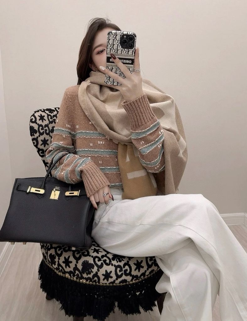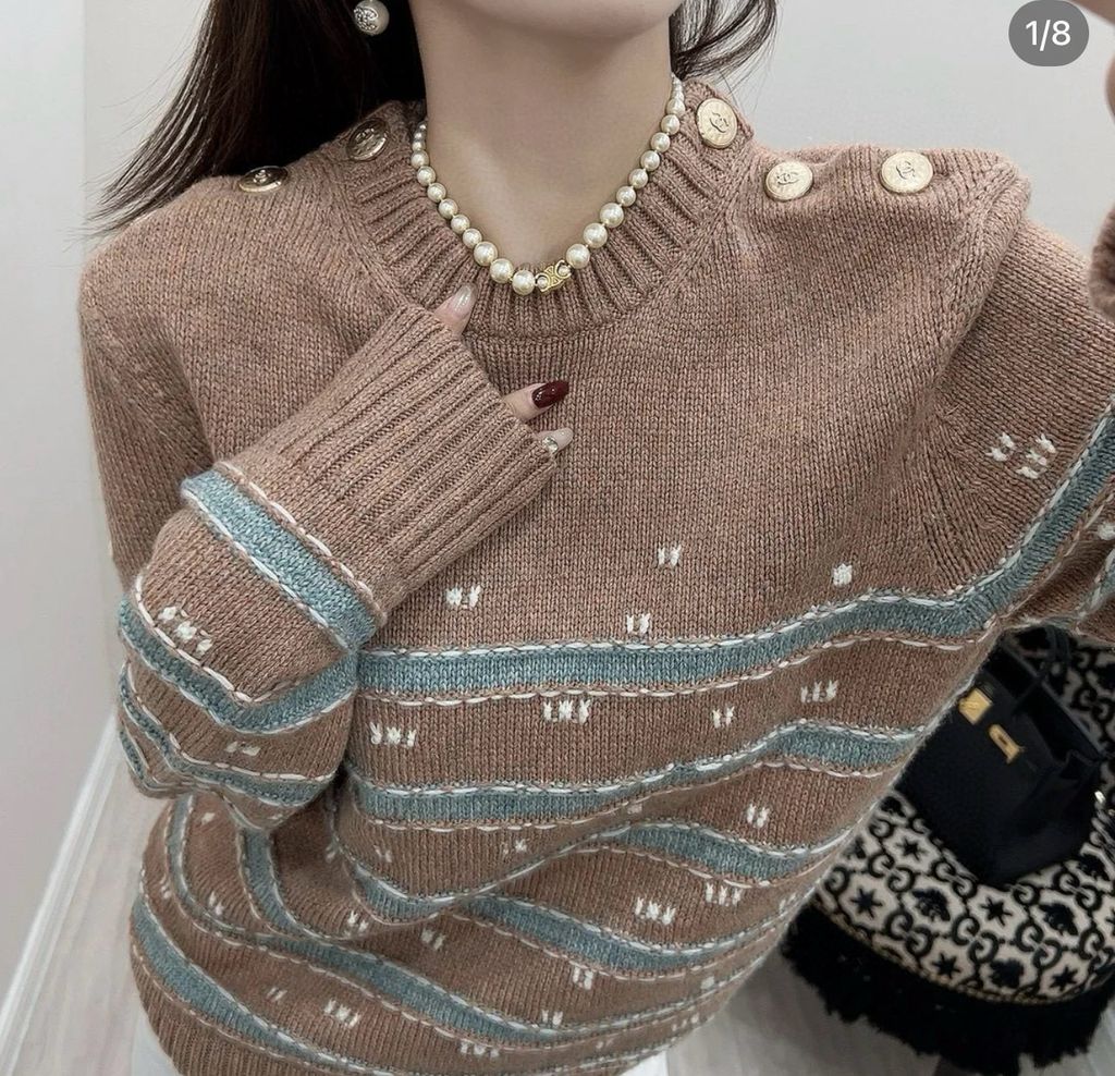 Áo len nữ CHNEL* VIP 1:1 kẻ ngang màu đẹp
