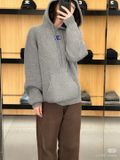 • Dáng hoodie knitwear (áo len chui đầu) kéo dây, phom đứng chuẩn, tạo cảm giác gọn người khi mặc.