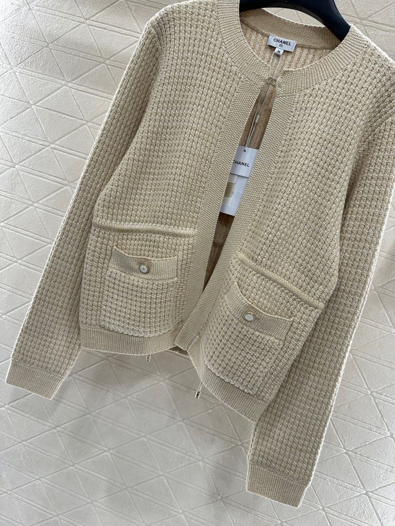 ÁO LEN NỮ CN CARDIGAN CỔ TRÒN DỆT VÂN CAO CẤP – KHÓA KÉO LOGO C ĐÔI, PHOM CHIẾT EO TINH TẾ 1700k (HÀNG ORDER QUỐC TẾ)*