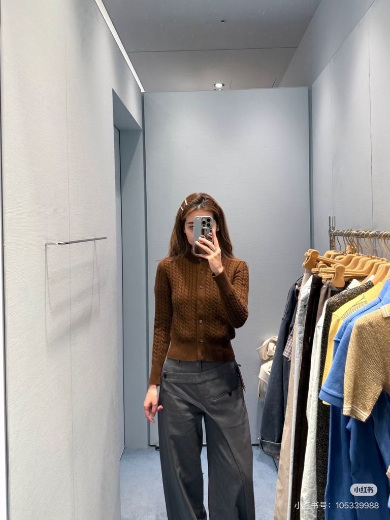 Một dáng cardigan “chuẩn mực” để diện lên là thấy ngay vẻ chỉn chu kiểu Pháp: gọn gàng, mềm mại và có chiều sâu nhờ bề mặt dệt nổi.