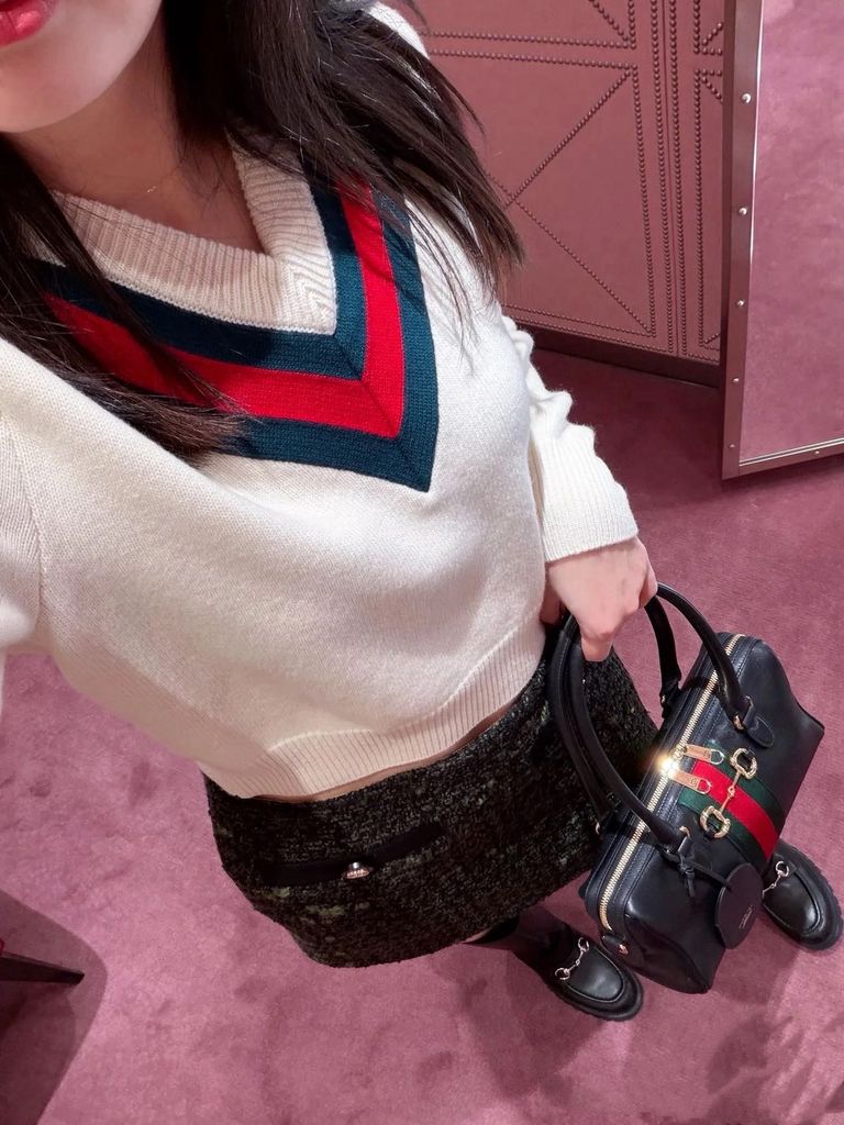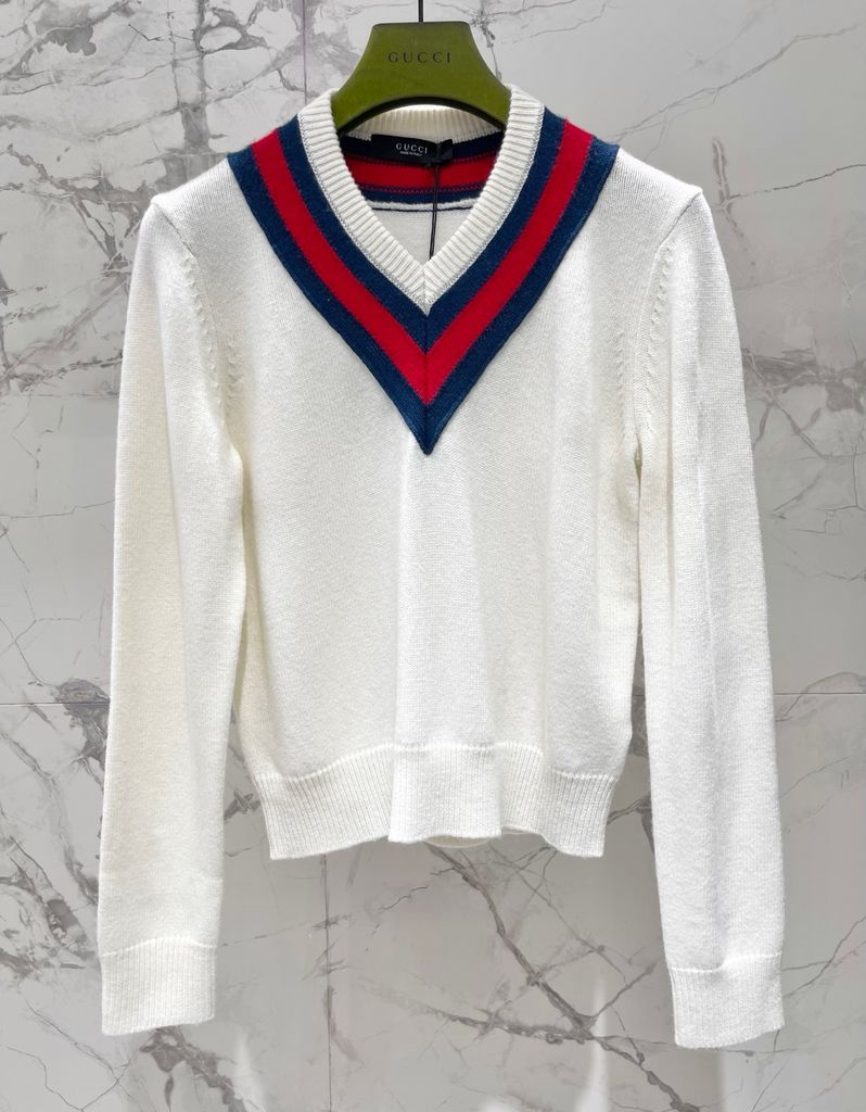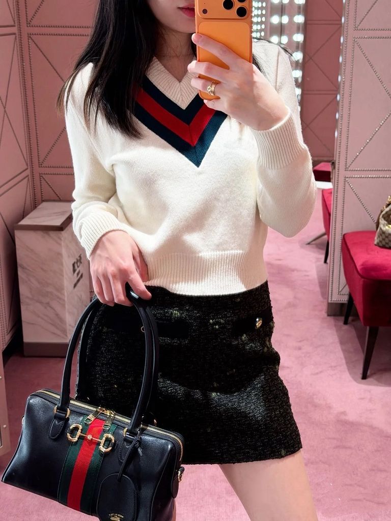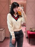 ÁO LEN NỮ GC DÁNG V-NECK VIỀN SỌC VINTAGE TÔN XƯƠNG KHÓA THON GỌN (HÀNG ORDER QUỐC TẾ)