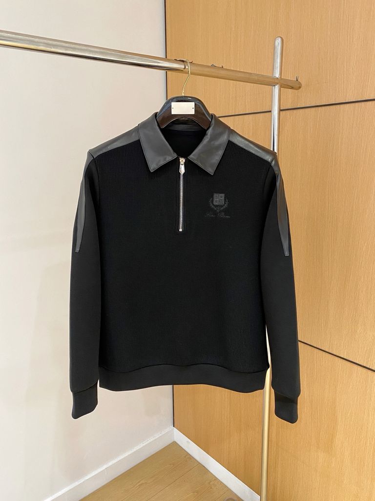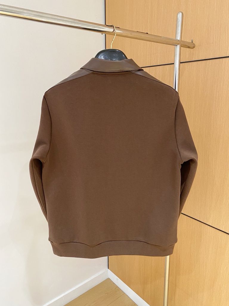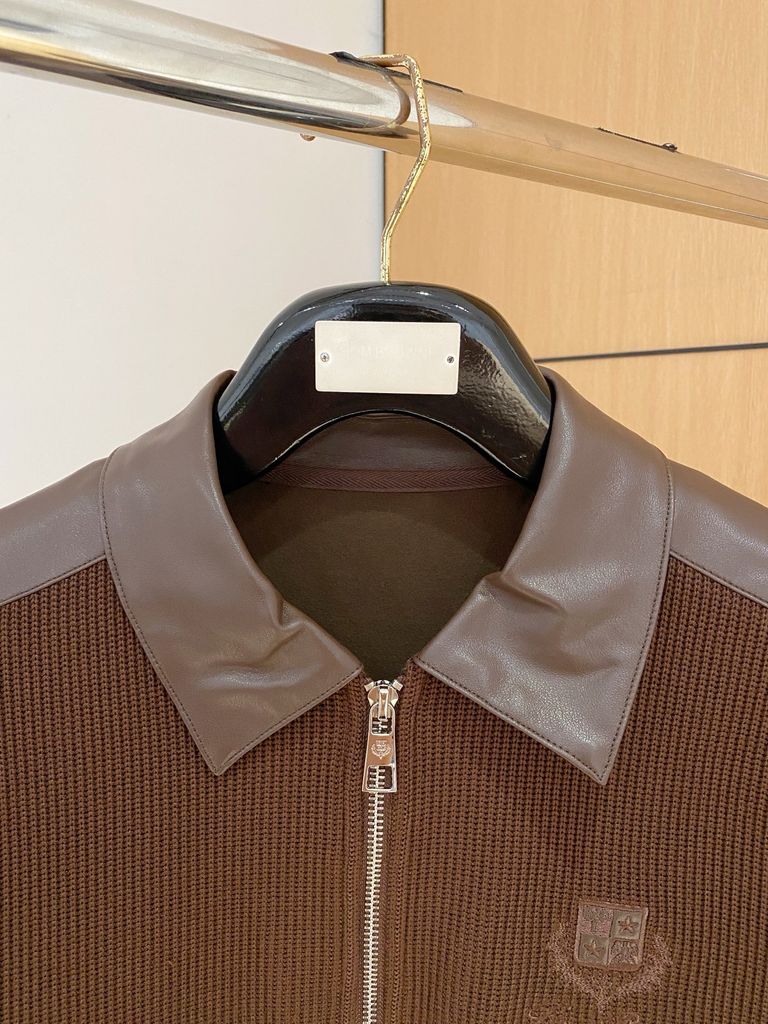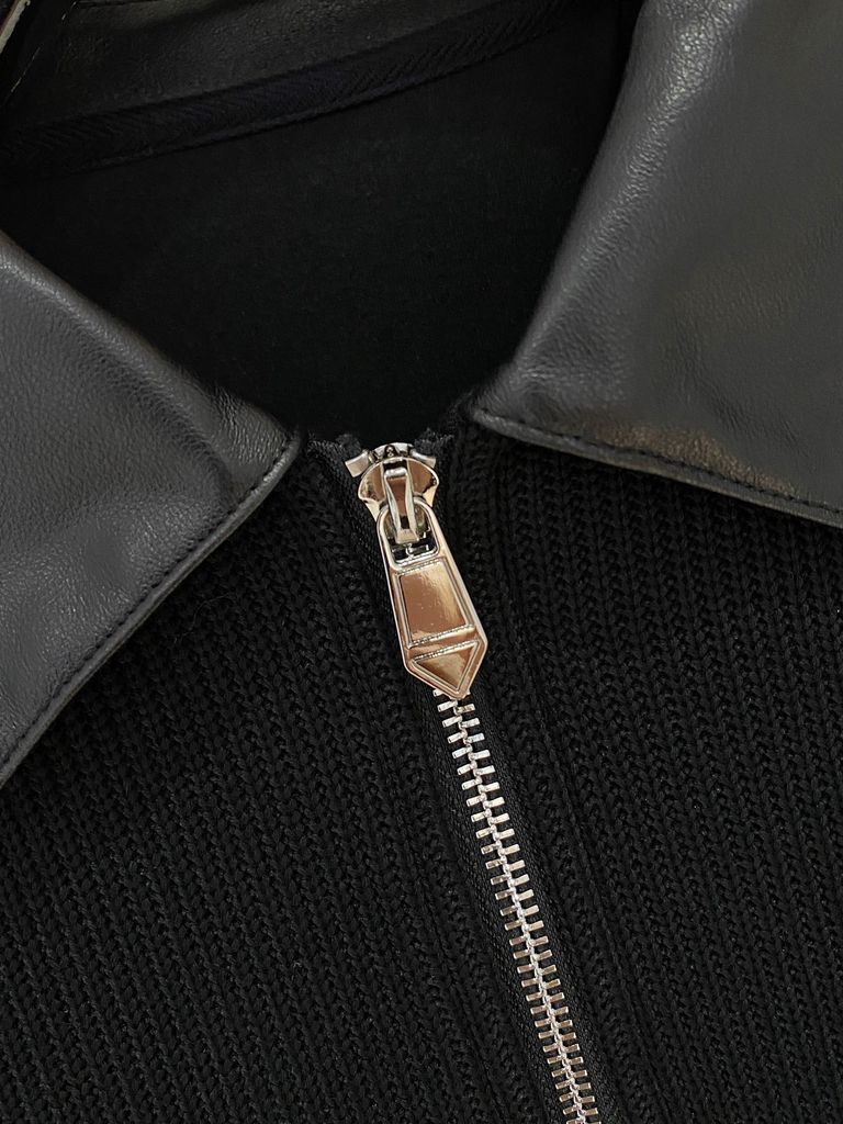 Chiếc sweater dệt kim phối da mang tinh thần hiện đại: lên dáng gọn gàng, ấm nhẹ, toát phong thái lịch lãm trong mọi lịch trình.