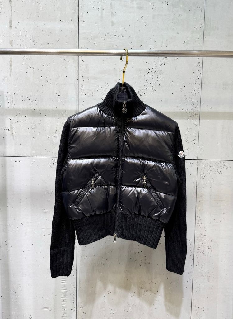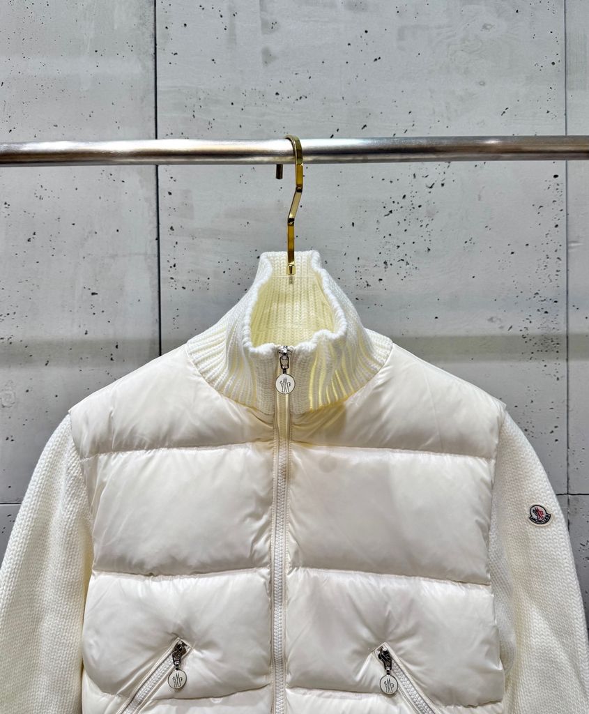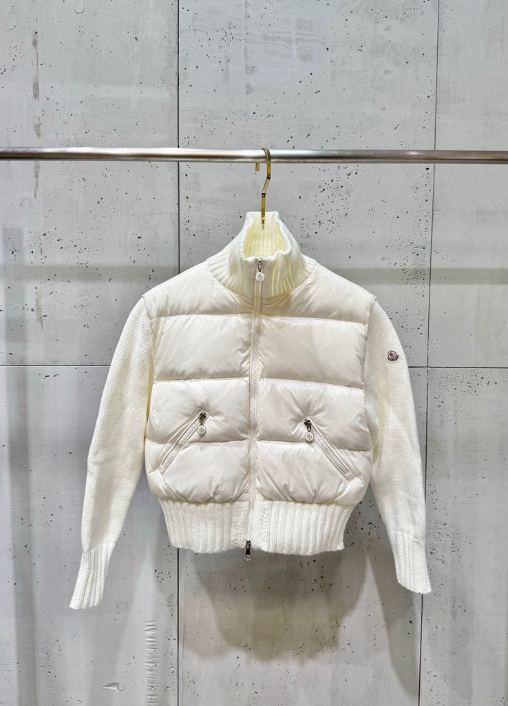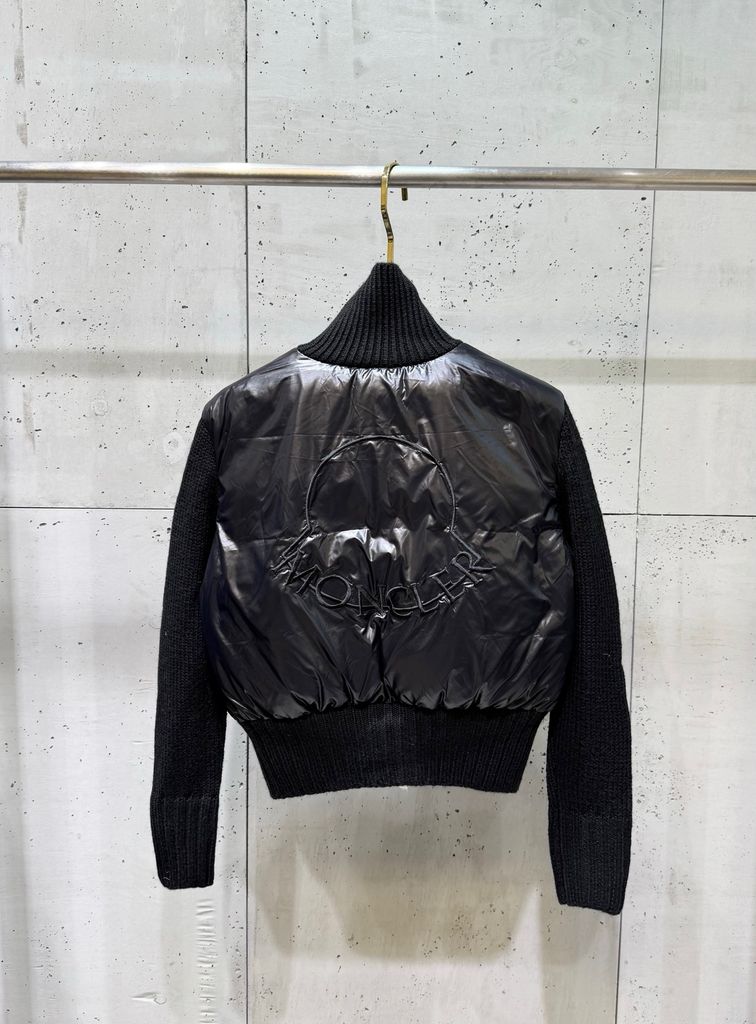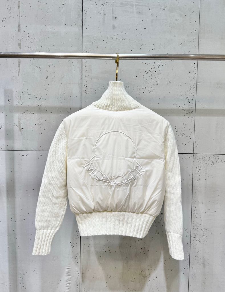 ÁO KHOÁC PHAO NỮ MCL PHỐI TAY LEN LÔNG CỪU – CỔ ĐỨNG DÁNG BOMBER, THÊU LOGO SAU LƯNG 1950k (HÀNG ORDER QUỐC TẾ)