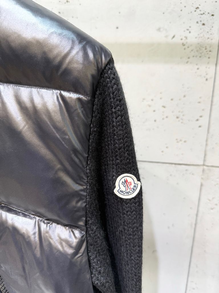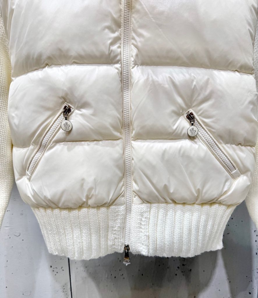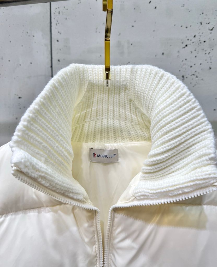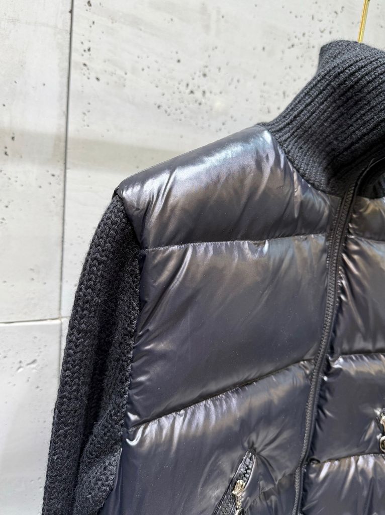 ÁO KHOÁC PHAO NỮ MCL PHỐI TAY LEN LÔNG CỪU – CỔ ĐỨNG DÁNG BOMBER, THÊU LOGO SAU LƯNG 1950k (HÀNG ORDER QUỐC TẾ)