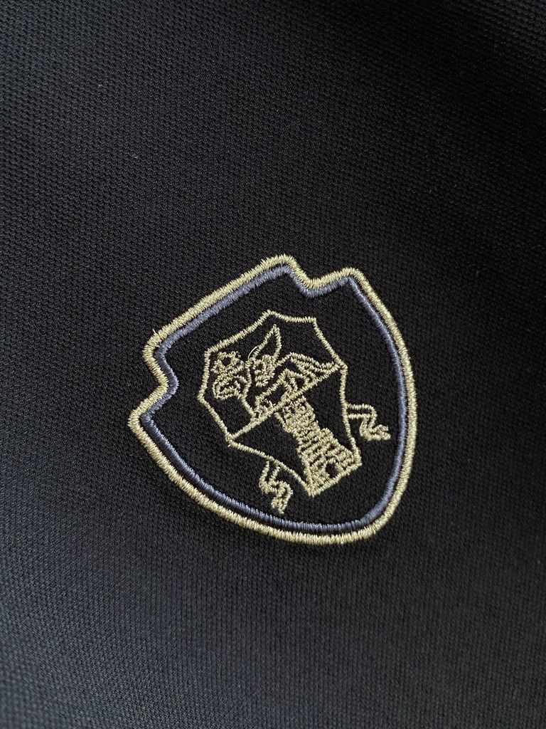 • Logo thêu trước ngực tối giản nhưng “có gu”, chuẩn tinh thần quiet-luxury
