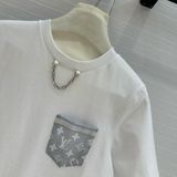 Áo phông nữ L*V cổ xích bạc túi hoạ tiết Monogram cao cấp loạt sản phẩm mới!