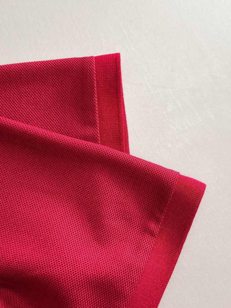 • Dệt kim kiểu “tổ ong/mesh knit” cho bề mặt thoáng, đàn hồi tốt, ít nhăn và giữ form ổn định