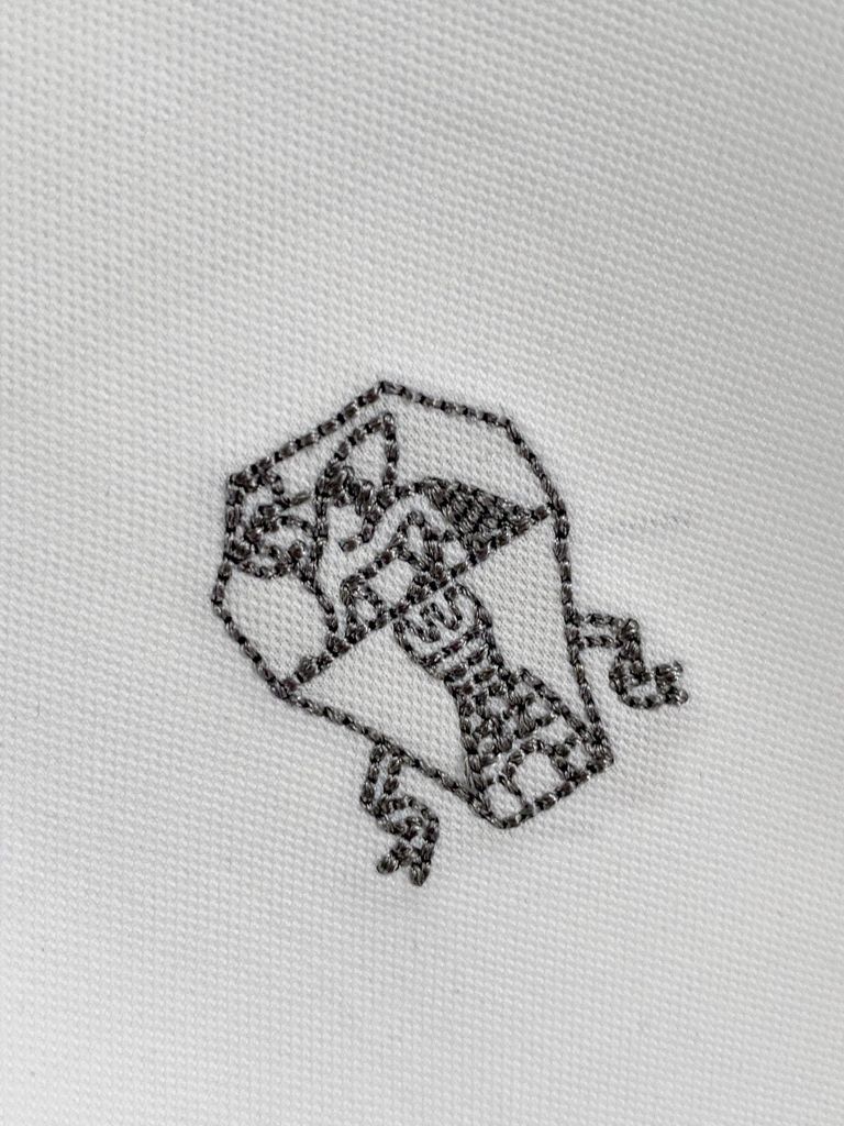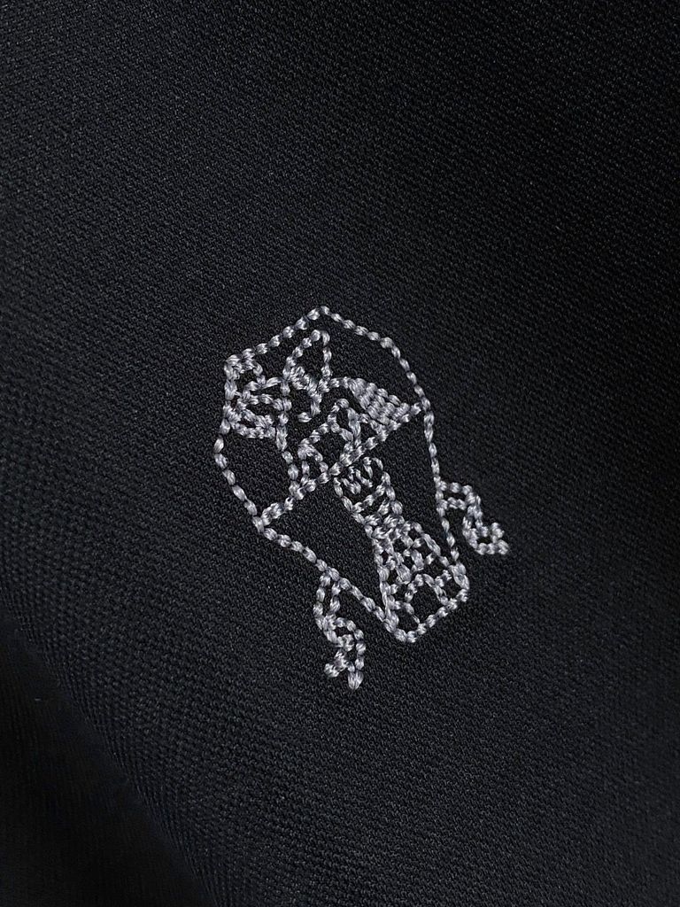 • Điểm nhấn thêu huy hiệu ngực kết hợp chữ ký thêu tạo hiệu ứng nhận diện sang trọng, tiết chế nhưng vẫn cuốn hút.