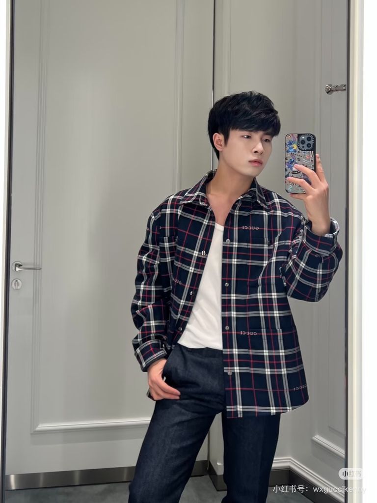 ÁO SƠ MI NAM GC CARO JACQUARD LOGO LẶP – DÁNG CỔ BẺ, FORM ĐỨNG CHUẨN 1400k (HÀNG ORDER QUỐC TẾ)