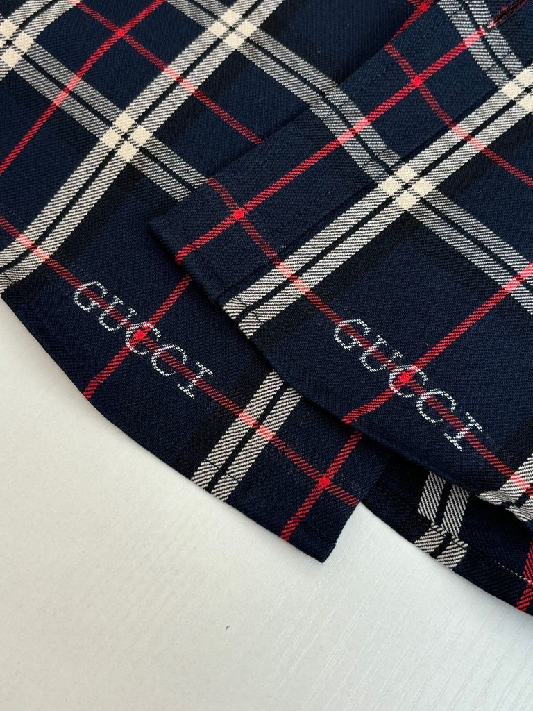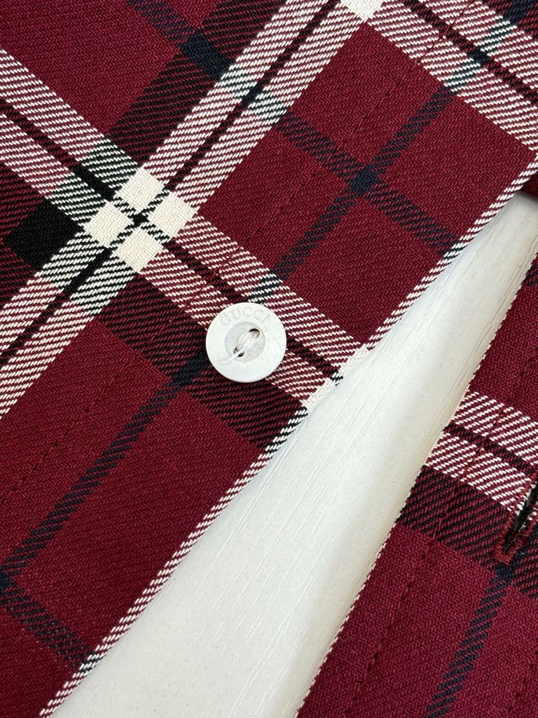 • Họa tiết caro cân đối, điểm nhấn dệt jacquard chữ ký lặp tạo hiệu ứng nhận diện tinh tế (không phô).