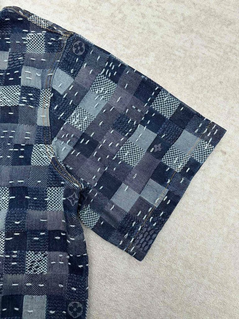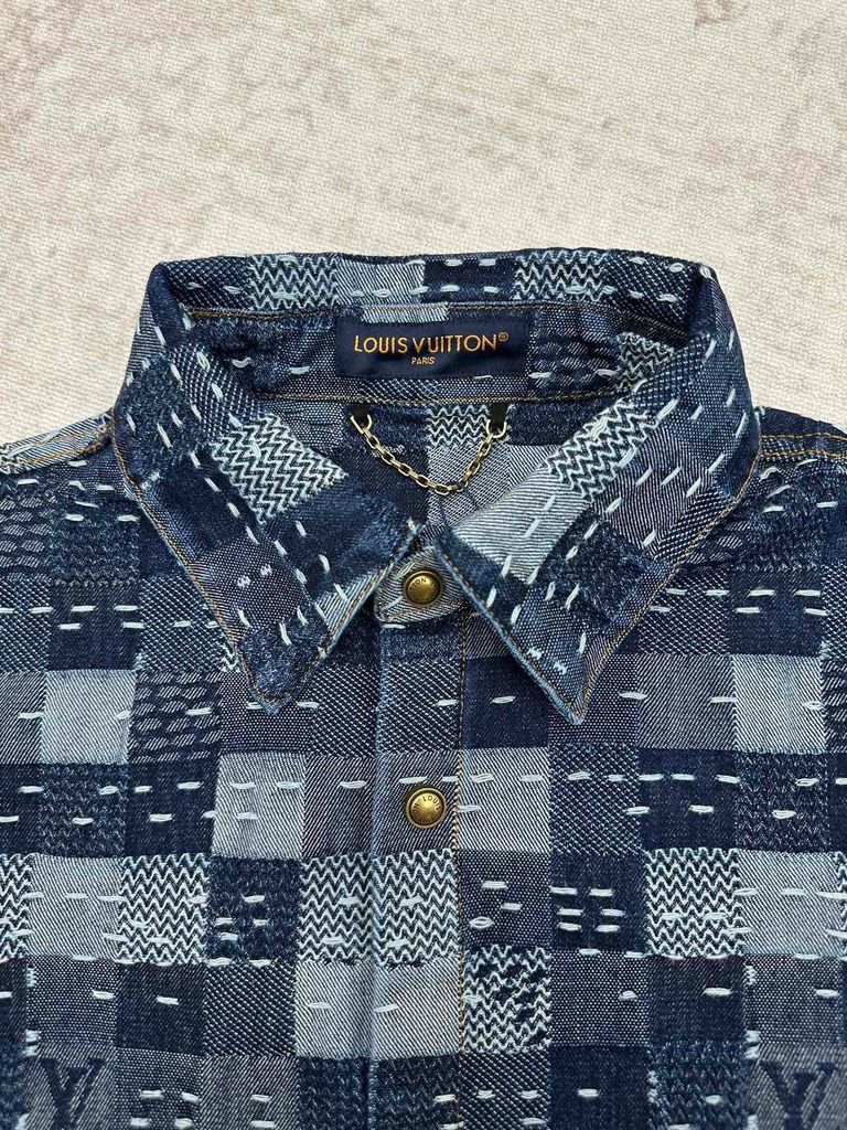 ÁO SƠ MI NAM L V PHỐI GHÉP DAMIER DỆT NỔI – PHOM RỘNG HIỆN ĐẠI 1300k (HÀNG ORDER QUỐC TẾ)