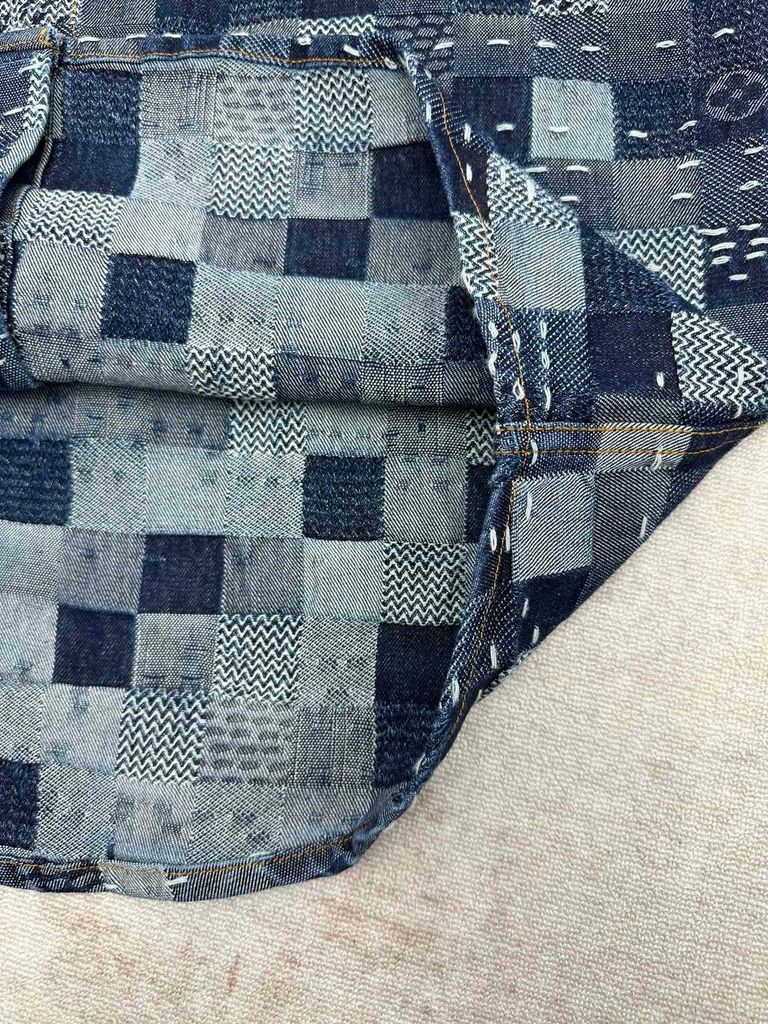 • Chất denim dệt chắc tay, bề mặt có hiệu ứng dệt/đan tạo texture nổi bật