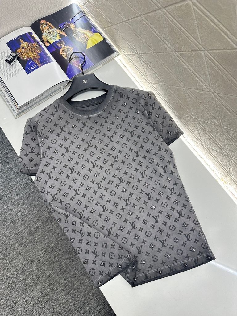 ÁO THUN UNISEX LV* MONOGRAM WASHED ĐÍNH ĐINH CAO CẤP 1000K (HÀNG ORDER QUỐC TẾ)