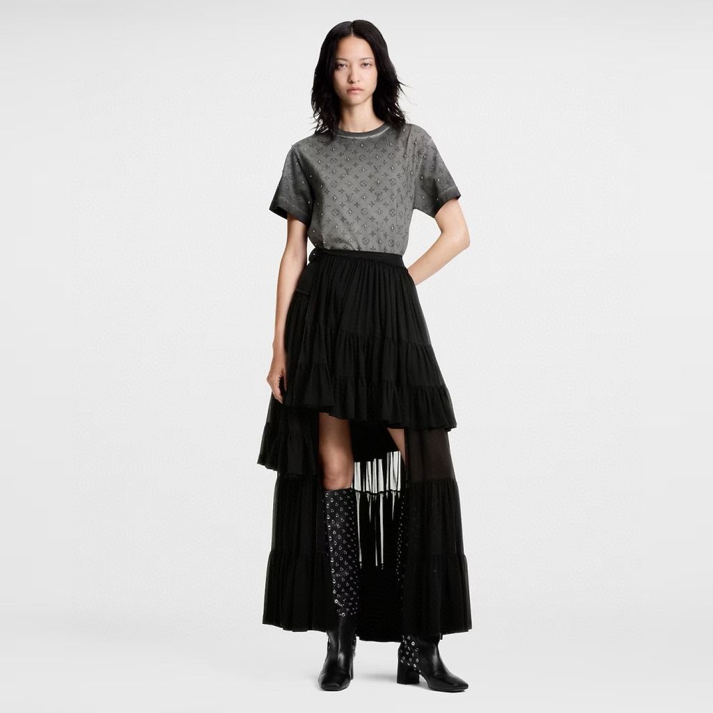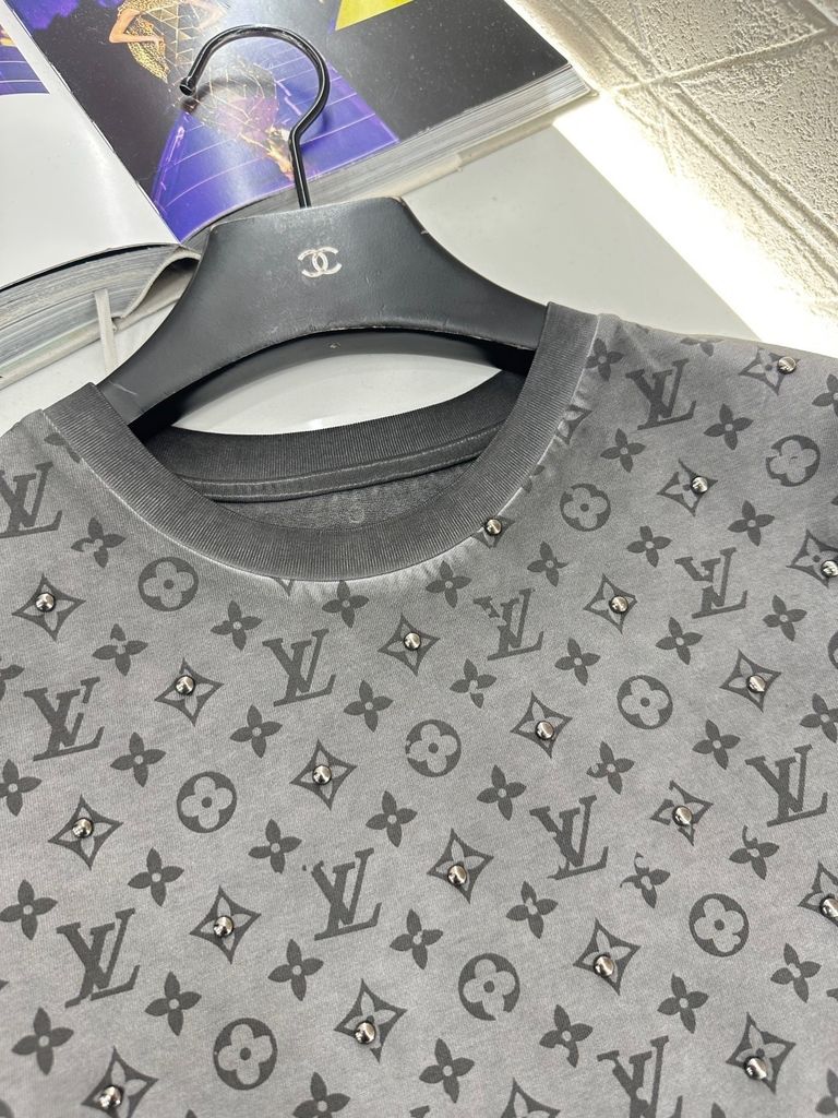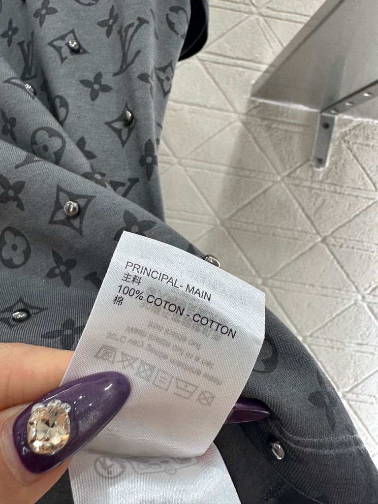 • Bản tee monogram xử lý hiệu ứng washed, đi cùng đinh tán kim loại bắt sáng nhẹ, lên người rất “chất” mà vẫn giữ cảm giác tinh tế, cao cấp.