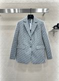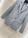 Một chiếc blazer nâng tầm khí chất: sắc xanh xám trang nhã, họa tiết monogram dệt nổi tinh xảo, bước vào mọi không gian trang trọng với phong thái tự tin.