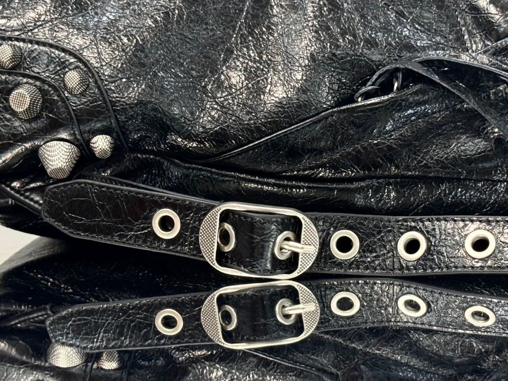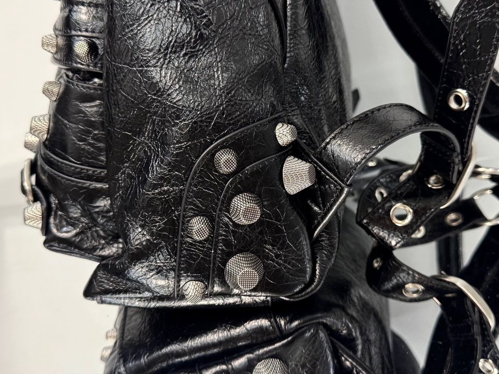 • Ngôn ngữ Le Cagole đặc trưng: bề mặt nhấn đinh tán, dây buông tạo điểm nhấn phóng khoáng