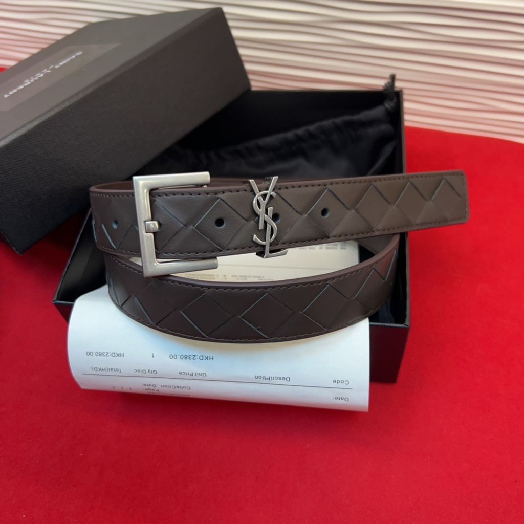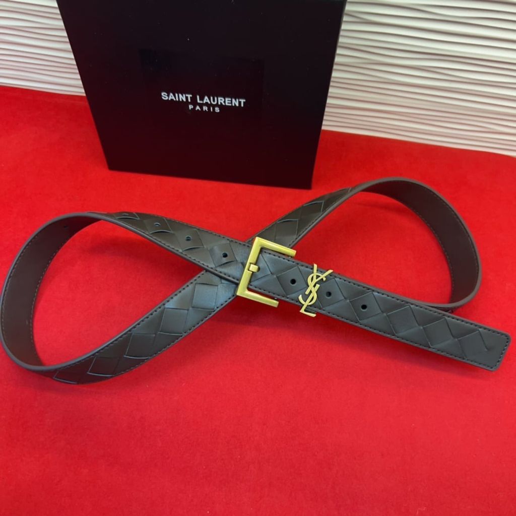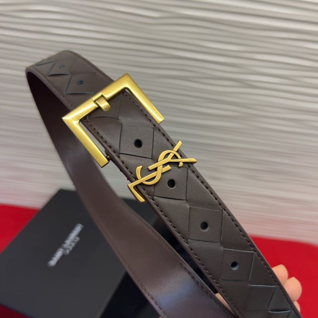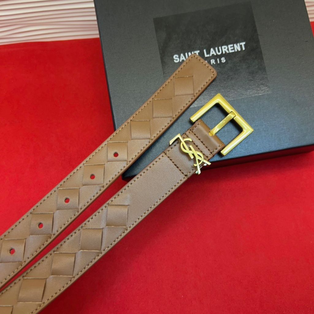 THẮT LƯNG NỮ YSL* DA NÂU HỌA TIẾT KHÂU CARO LOGO THANH LỊCH 1050k (HÀNG ORDER QUỐC TẾ)*