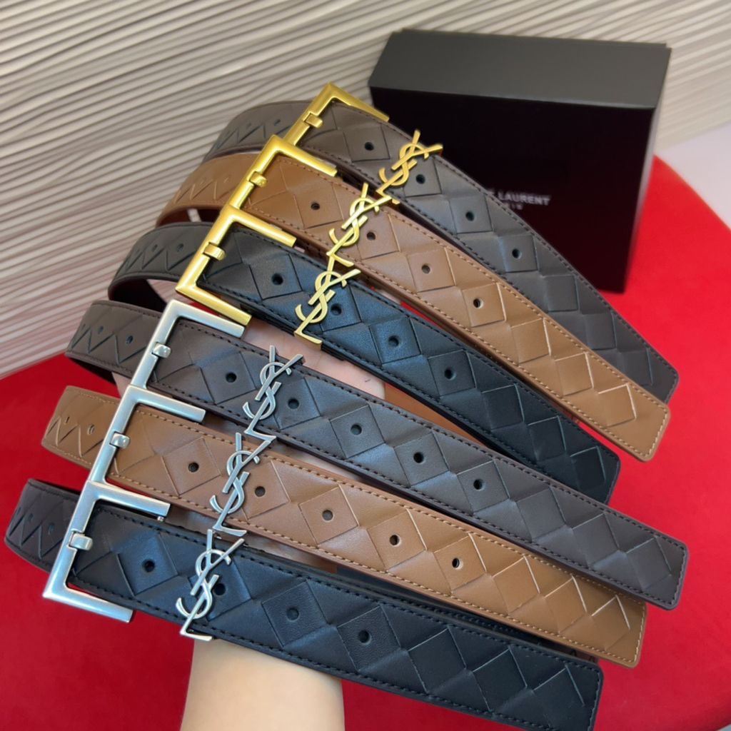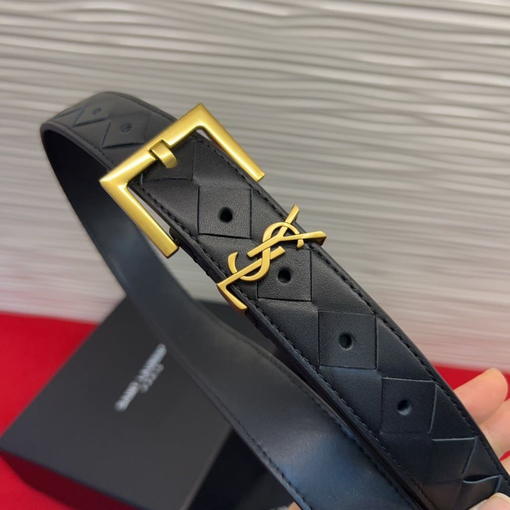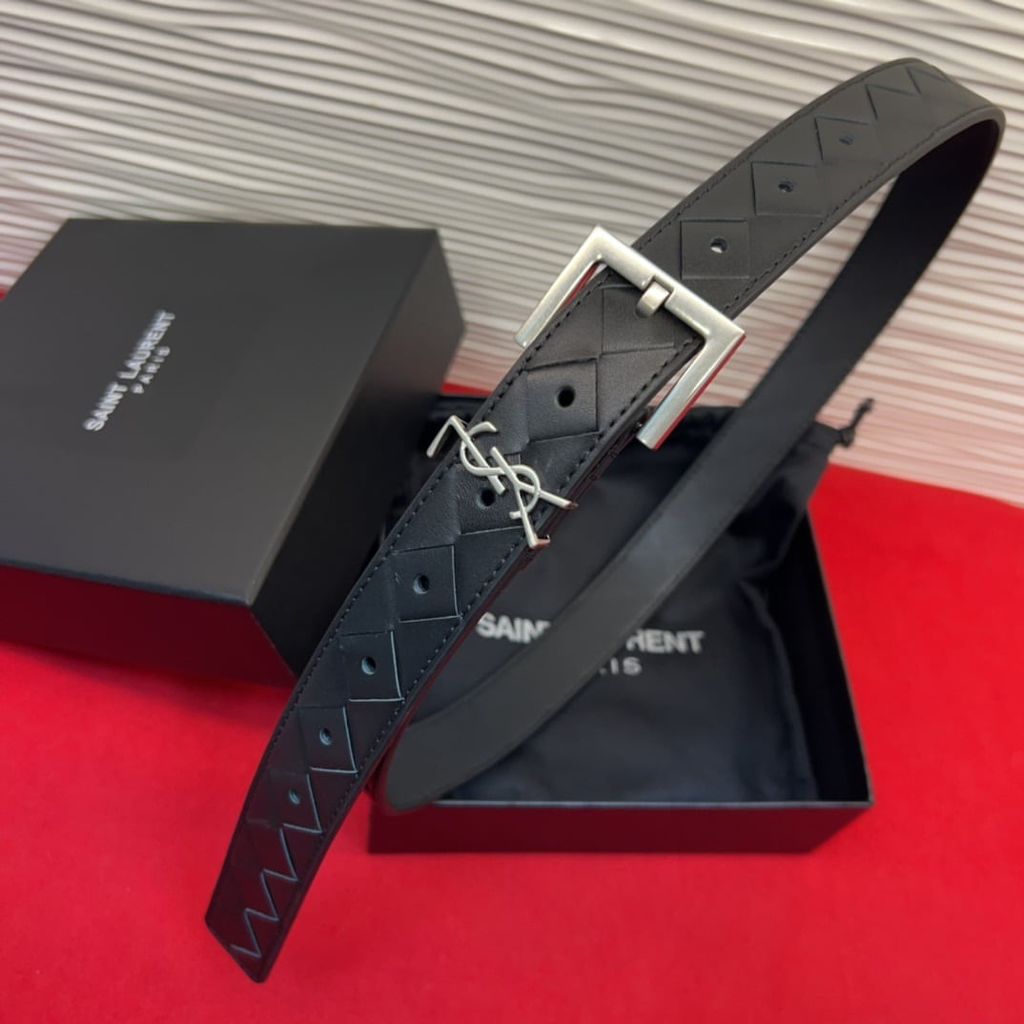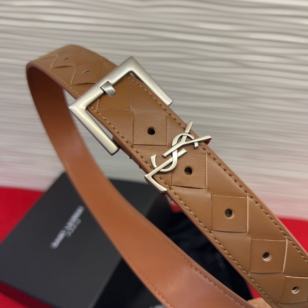 THẮT LƯNG NỮ YSL* DA NÂU HỌA TIẾT KHÂU CARO LOGO THANH LỊCH 1050k (HÀNG ORDER QUỐC TẾ)*