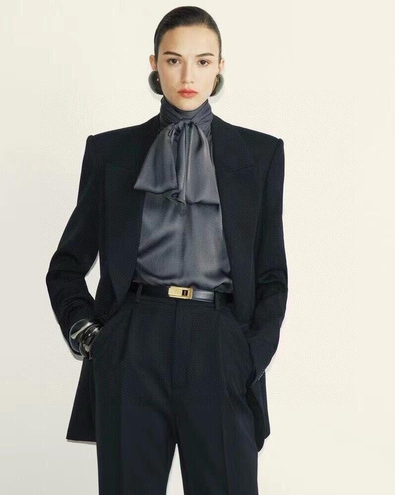 • Tỷ lệ phom cân đối, thân áo rủ nhẹ giúp vóc dáng gọn gàng, lịch thiệp.
