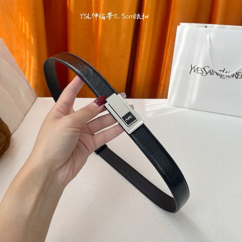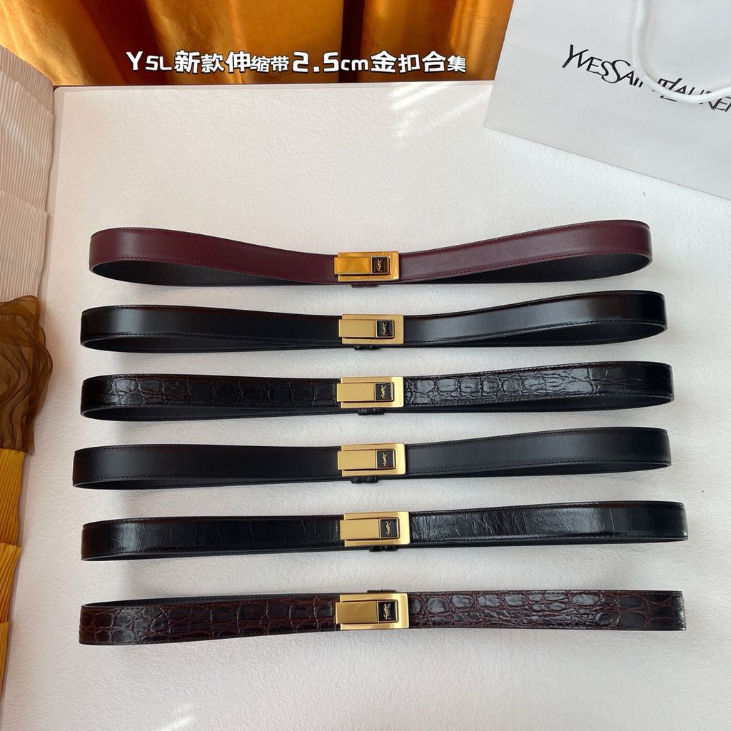 Thắt lưng nữ Saint Laurent Saint Laurent, khóa điện vàng chính hãng nguyên bản, dây đeo rút mới, da nguyên bản của Ý, một cỡ vừa vặn, rộng 2,5cm