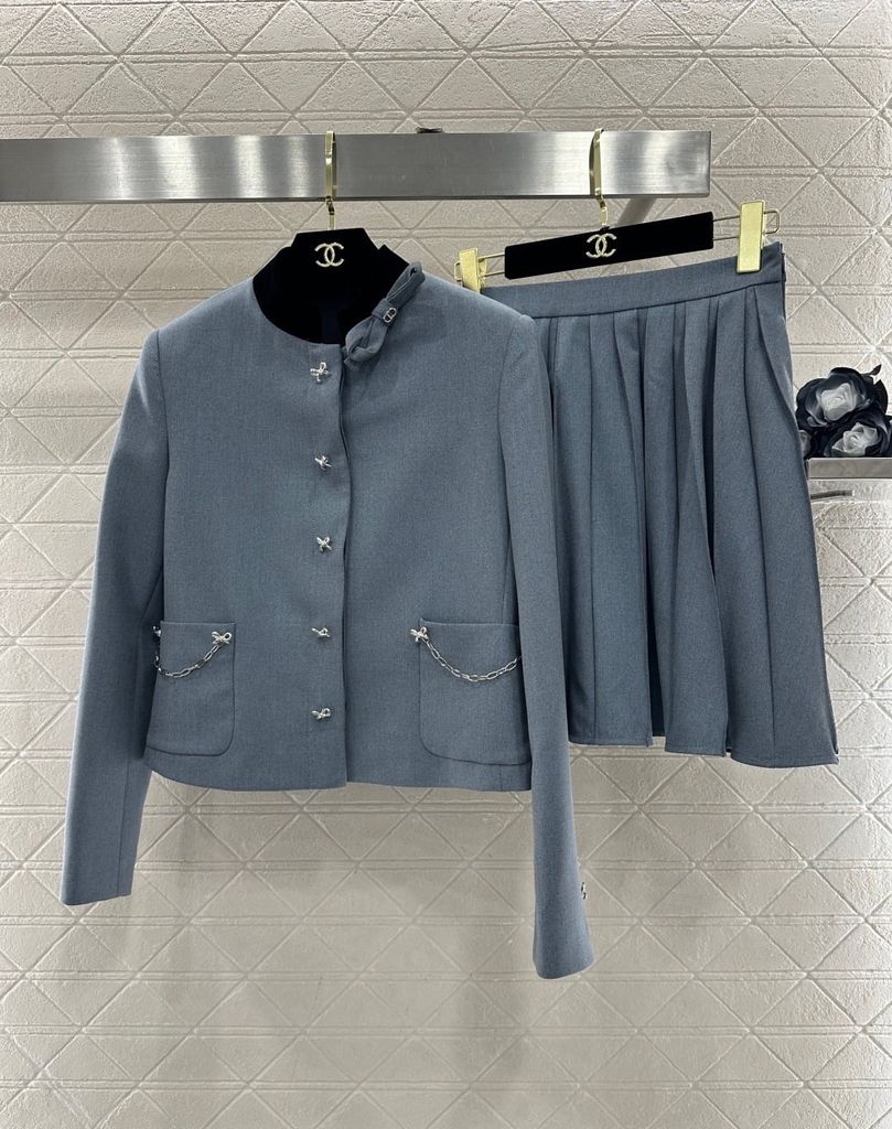 SET NỮ DR – ÁO KHOÁC CỔ ĐỨNG THANH LỊCH + CHÂN VÁY XẾP LY BAY DÁNG, ĐIỂM NHẤN NƠ BƯỚM & DÂY XÍCH TINH XẢO ÁO 1750K / VÁY 1400K (HÀNG ORDER QUỐC TẾ)