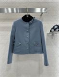 • Áo khoác dáng ngắn cổ đứng, đường cắt ôm gọn phần vai – tạo tổng thể chỉn chu, tôn dáng tinh tế