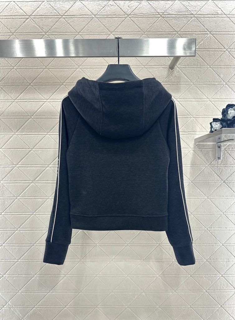• Áo khoác zip liền mũ, phom gọn tôn dáng; tổng thể tối giản nhưng có điểm nhấn sắc nét.