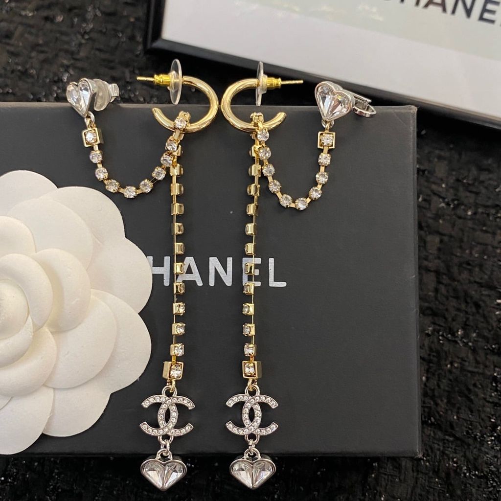 BÔNG TAI NỮ CN DÁNG THẢ NGỌC TRAI & CHARM DOUBLE C – HIỆU ỨNG DÀI THANH THOÁT, LÊN TAI CỰC SANG 650K (HÀNG ORDER QUỐC TẾ)