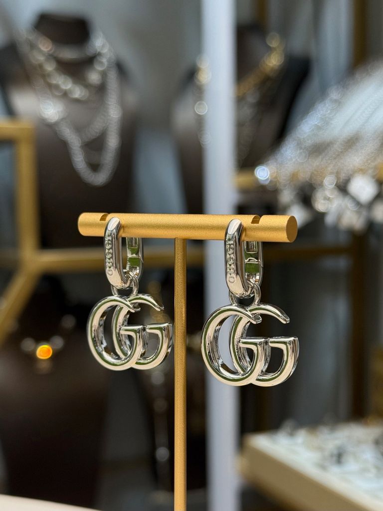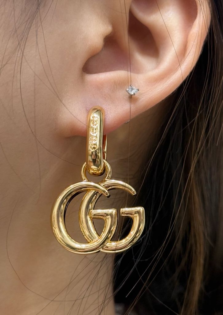BÔNG TAI NAM NỮ GC DOUBLE G TREO DÁNG HUGGIE – HOÀN THIỆN ĐÁNH BÓNG, HIỆU ỨNG CỔ ĐIỂN HIỆN ĐẠI 600k (HÀNG ORDER QUỐC TẾ)