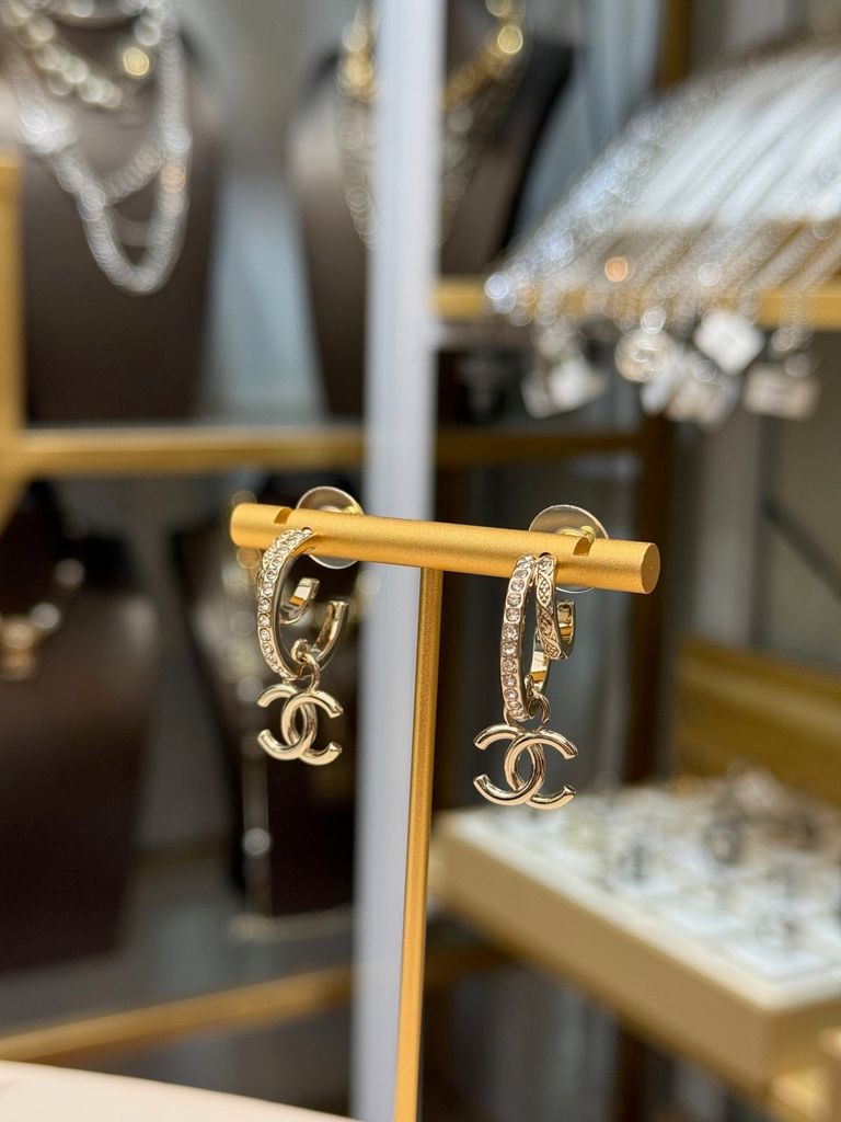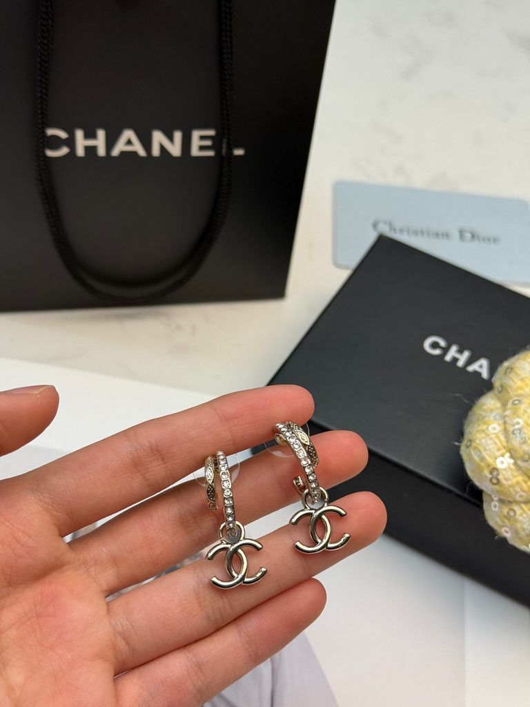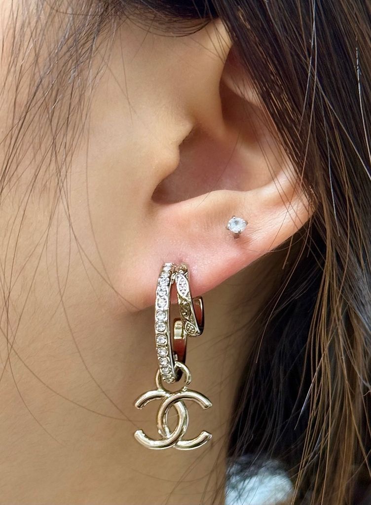 BÔNG TAI NỮ CN 26C DOUBLE HOOP ĐÍNH ĐÁ – BIỂU TƯỢNG DOUBLE C THANH LỊCH, LÊN TAI SÁNG SANG 600k (HÀNG ORDER QUỐC TẾ)