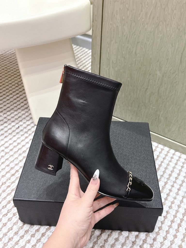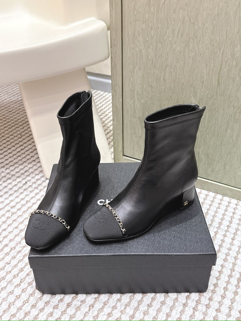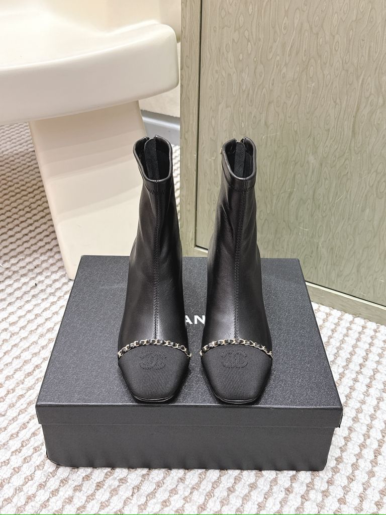 BOOT NỮ CHAN* MŨI VUÔNG DÂY XÍCH CỔ NGẮN GÓT TRỤ 5CM TIỂU THƯ SANG TRỌNG 1900k (HÀNG ORDER QUỐC TẾ)