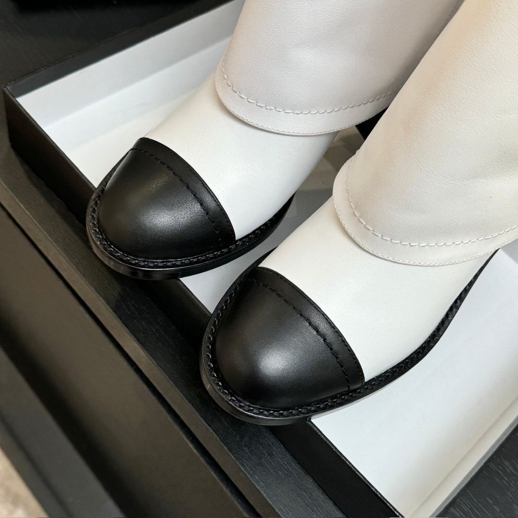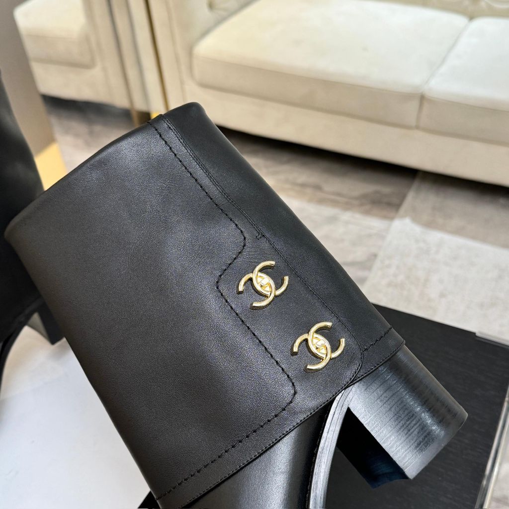 Thiết kế mang tinh thần “iconic” nhưng cực kỳ tinh gọn: phom boot ống đứng, điểm nhấn khóa Double C dạng “book buckle” tạo hiệu ứng nhận diện sang mà không phô trương. Dáng gót thô 5cm cân đối, tôn tỷ lệ chân đẹp rõ rệt khi phối cùng quần/đầm.