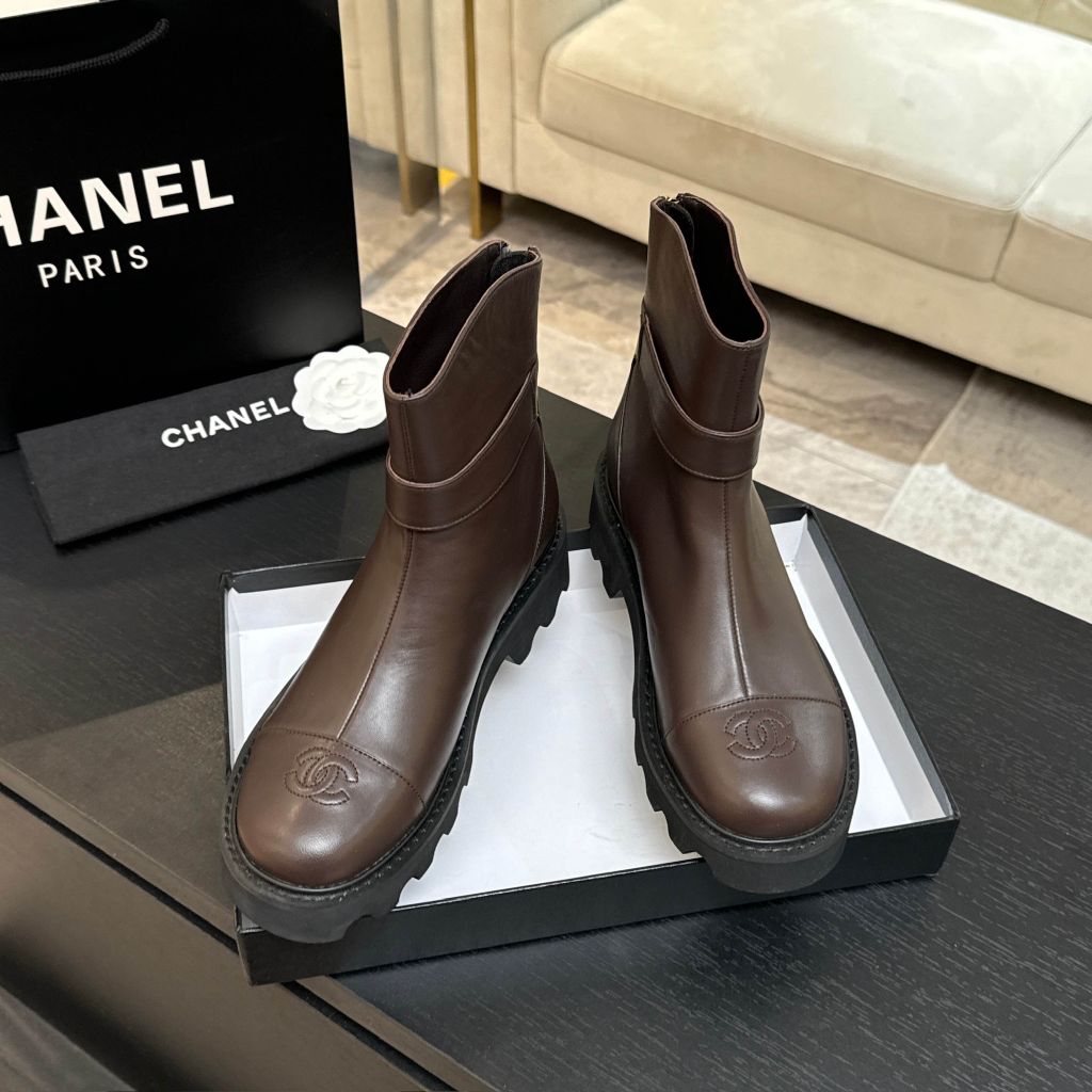 BOOT NỮ CN DA LỘN NÂU COFFEE PHỐI MŨI DA – LOGO KIM LOẠI, PHOM GỌN SANG, ĐẾ RĂNG CƯA BẢN DÀY 2200k (HÀNG ORDER QUỐC TẾ)