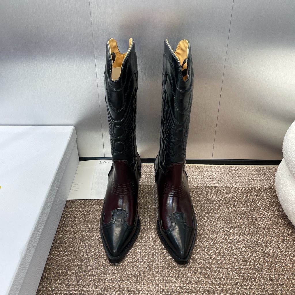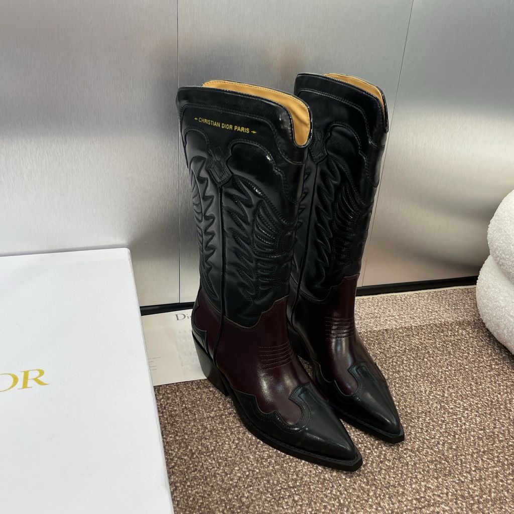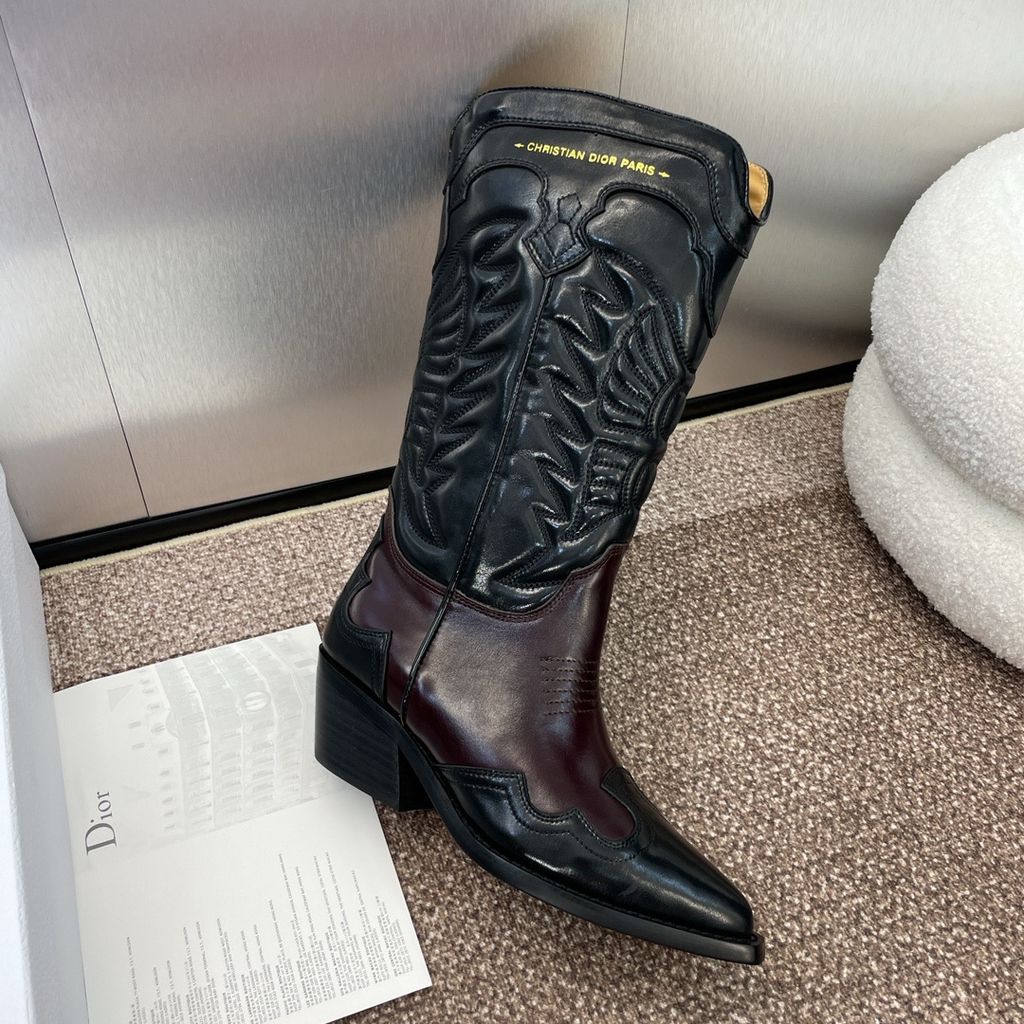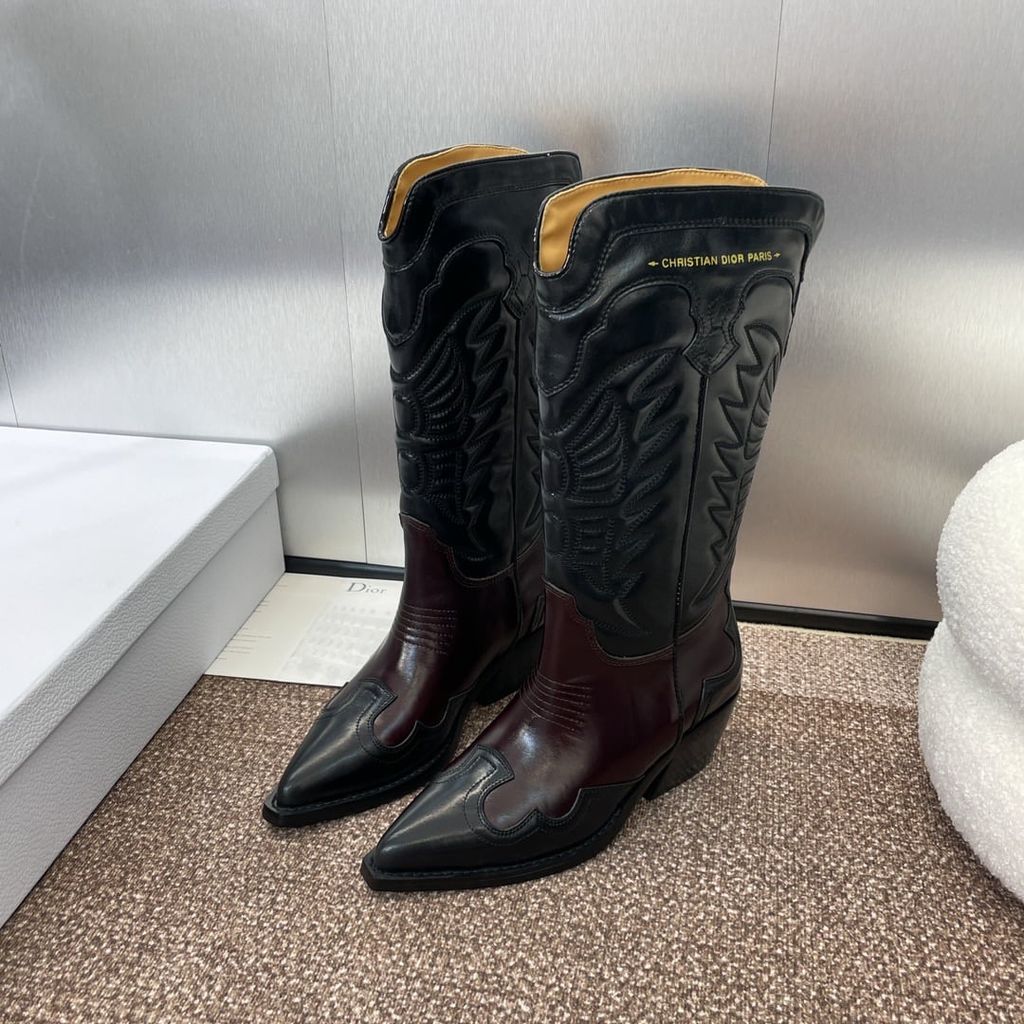 GIÀY BOOTS NỮ DIORR D-WEST THÊU HỌA TIẾT, MŨI NHỌN – GÓT 4.5CM 3000k