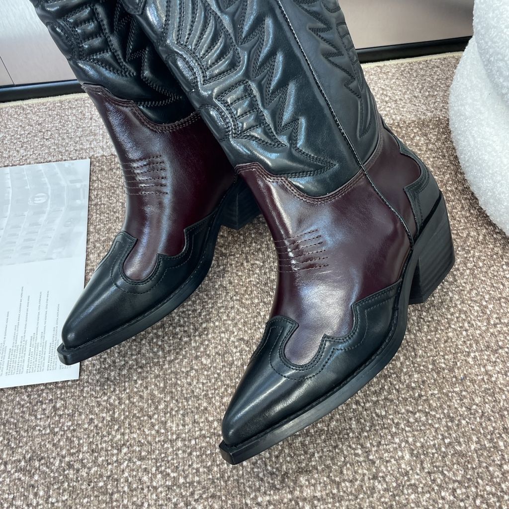 • Phom cowboy hiện đại, mũi nhọn – gót vuông chắc chắn 4.5cm, bước đi vững vàng.